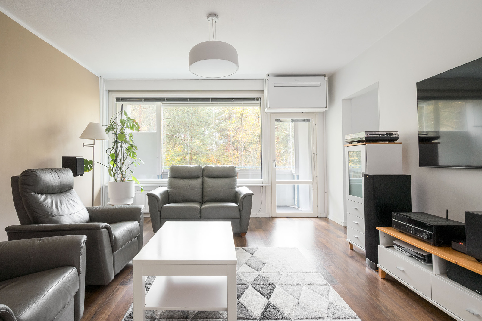 Tervetuloa tutustumaan tähän siistikuntoiseen ja hyväpohjaiseen läpitalon perheasuntoon, jossa valo tulvii sisään kahdelta ilmansuunnalta. Asunnossa on tilava olohuone, erillinen keittiö, hyvänkokoiset makuuhuoneet sekä parveke rauhallisin ja vehrein näkymin.