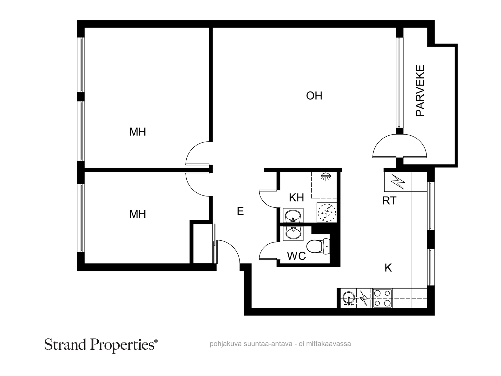 Erityismainintana asunnon iso makuuhuone, jonka voi halutessaan jakaa kahdeksi erilliseksi huoneeksi – täydellinen ratkaisu esimerkiksi kasvavan perheen tarpeisiin tai etätyötilaksi. Pohjaratkaisu on käytännöllinen ja helposti muunneltavissa.
