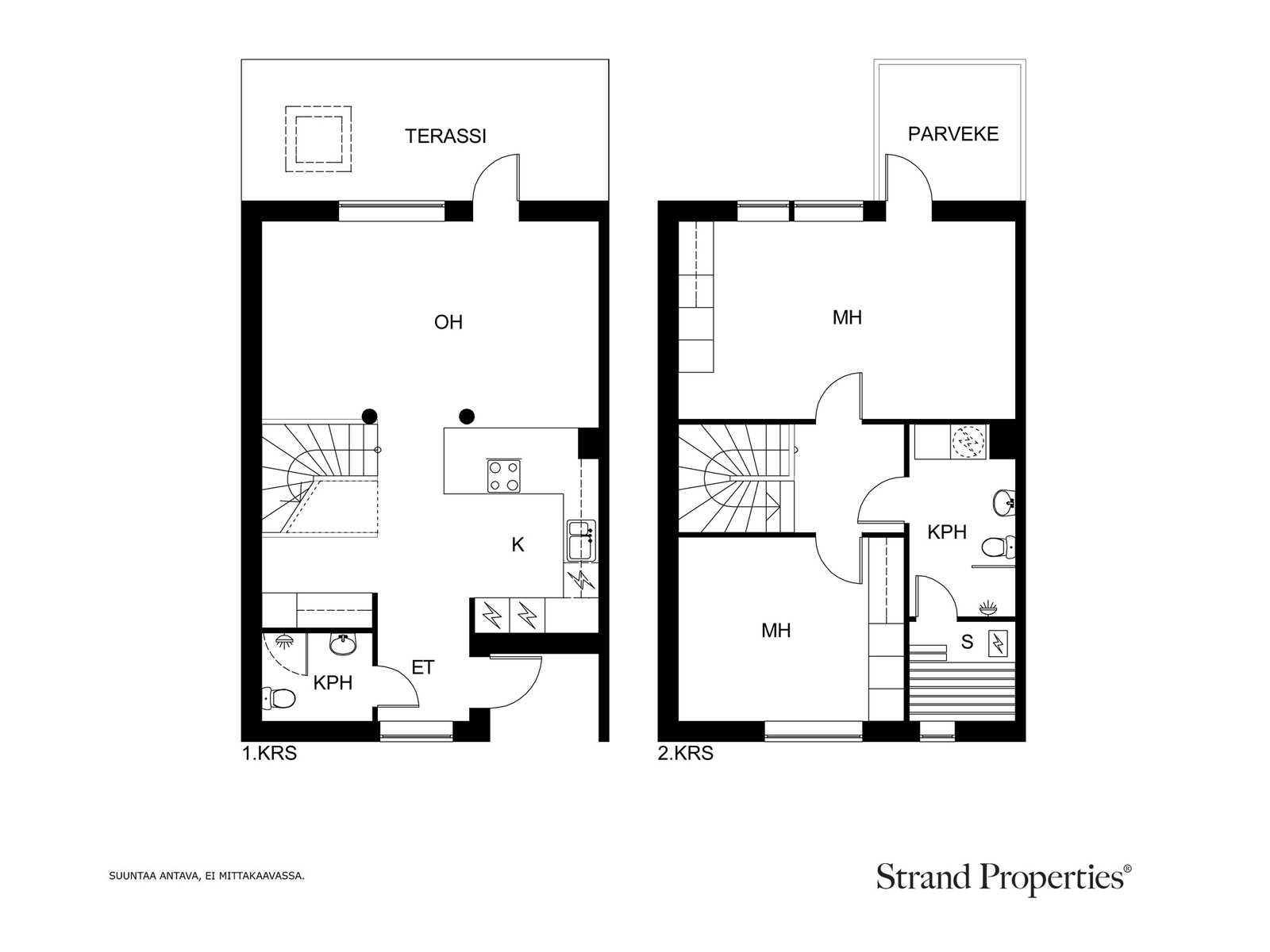 Huoneistossa on jalkapohjia hellivä vesikiertoinen lattialämmitys, kaunissävyiset parkettilattiat, ikkunallinen sauna sekä parveke ja oma terassi. Tilava keittotila on järkevästi suunniteltu ja hyvin varusteltu - erilliset jääkaappi ja pakastinkaappi, integroitu astinpesukone, erillisuuni, induktiotasoon upotettu liesituuletin, komposiittiallas ja käytännöllinen saareke. Kylpyhuoneiden ovet ovat roiskevedenkestäviä ja saunan ovi on karkaistua turvalasia.