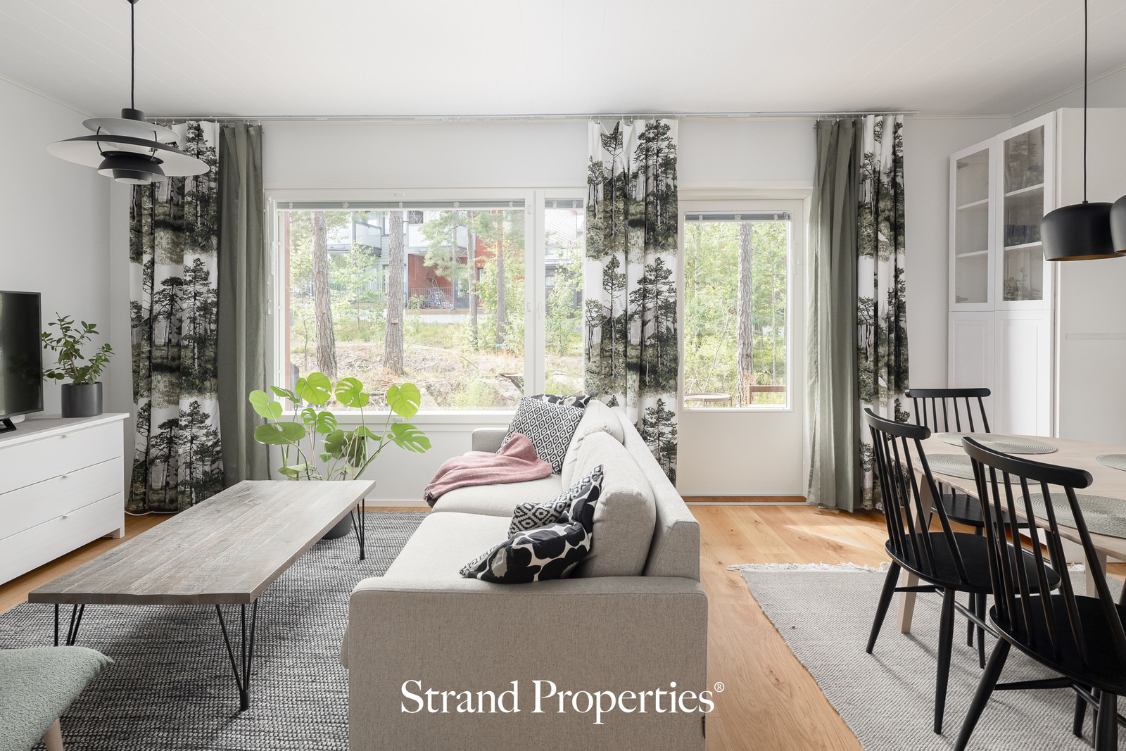 Täällä yhdistyvät puutalojen lämpö ja miellyttävyys, moderni rakennustekniikka, lattialämmityksen mukavuus, kalliopuistonäkymät sekä rauhallinen ympäristö.