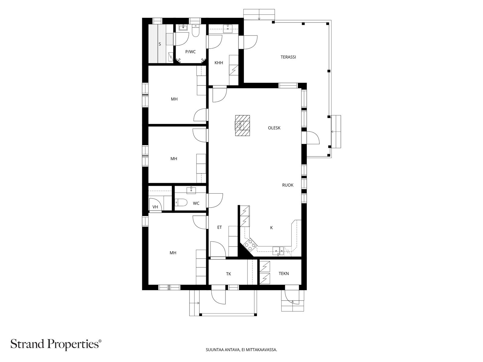 • Huoneistoselitelmä 4h, k, kph/wc, khh, wc, vh, terassi, vierastalo