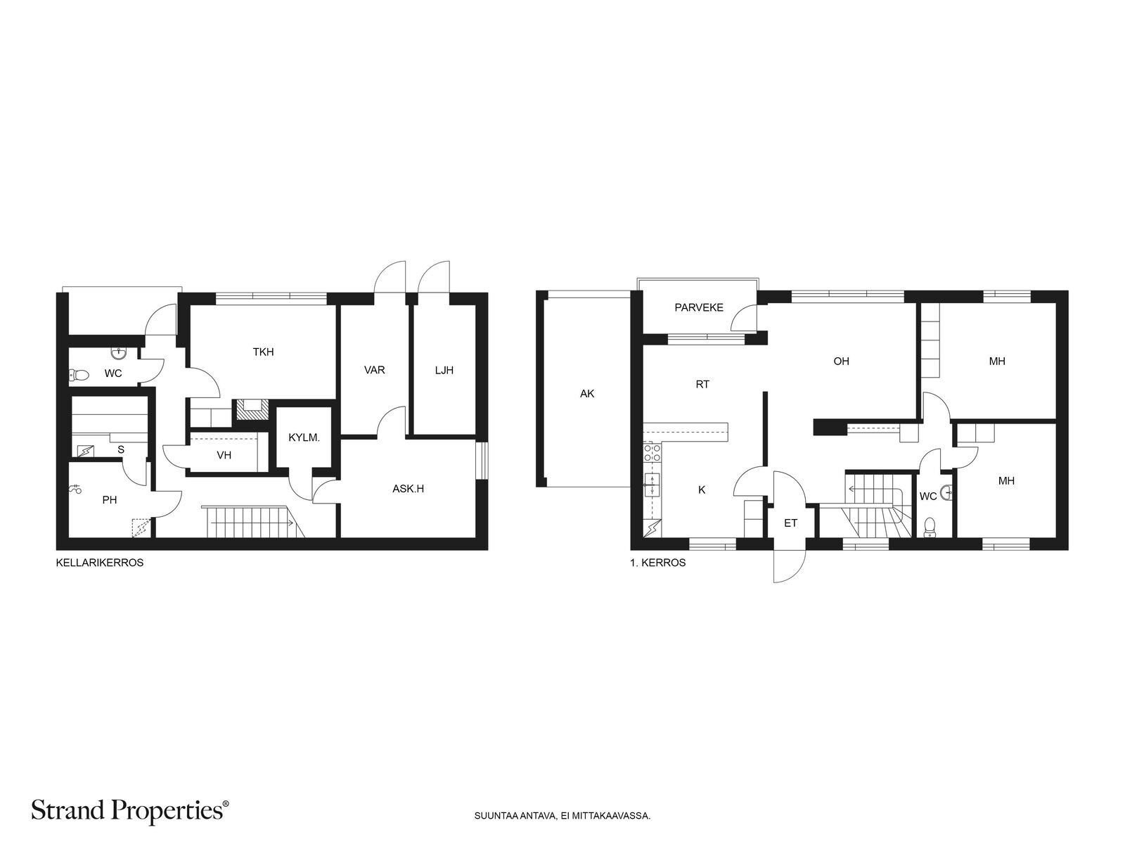 Alakerran takkahuone on kuin tehty arki-iltojen oleskeluun yhdessä perheen ja ystävien kanssa. Tilava kodinhoitohuone sekä kaksi erillistä wc:tä tuovat käytännöllisyyttä arkeen ja saunaosastolla rentoudutaan oman saunan lempeissä löylyissä.