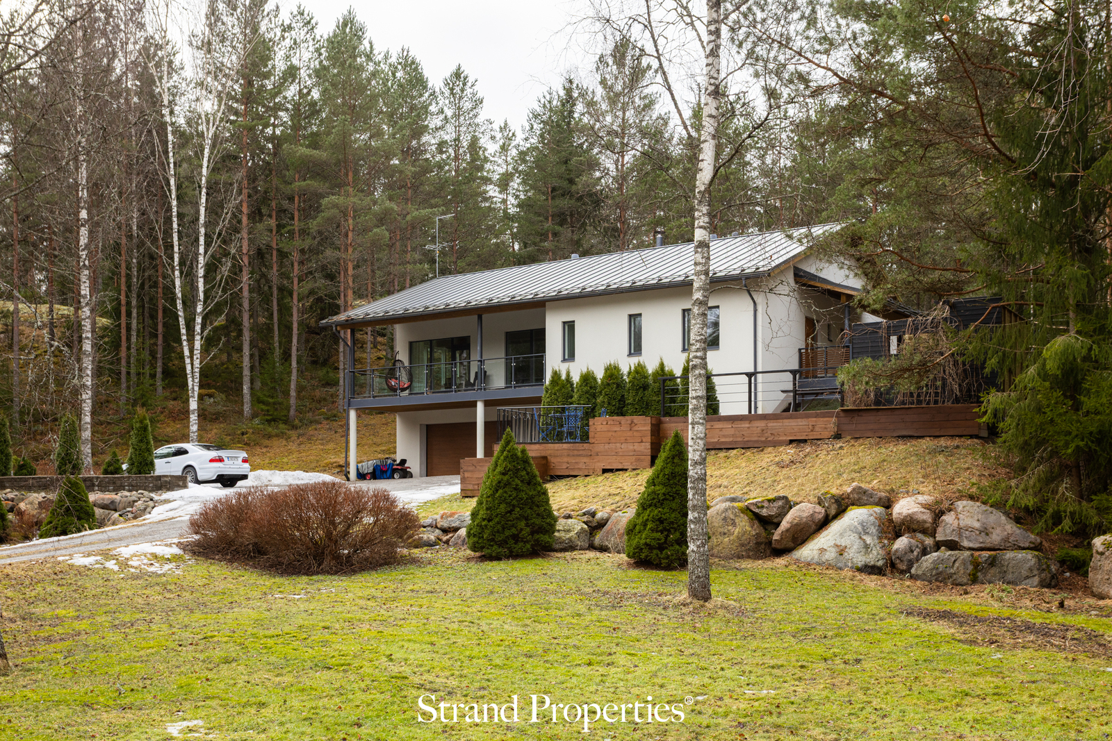Vuonna 2009 valmistunut omakotitalo sijaitsee 6690 neliön metsään rajoittuvalla omalla rinnetontilla, päättyvän tien varrella. Selkeälinjainen ja pohjaratkaisultaan ilmava kohde on tyyliltään moderni ja soveltuu erinomaisesti laadukasta kotia etsivälle perheelle. Käyttömukavuutta lisää kellarikerroksessa sijaitseva, 76,5 neliön kahden auton lämmin talli, sekä energiatehokas maalämpö.