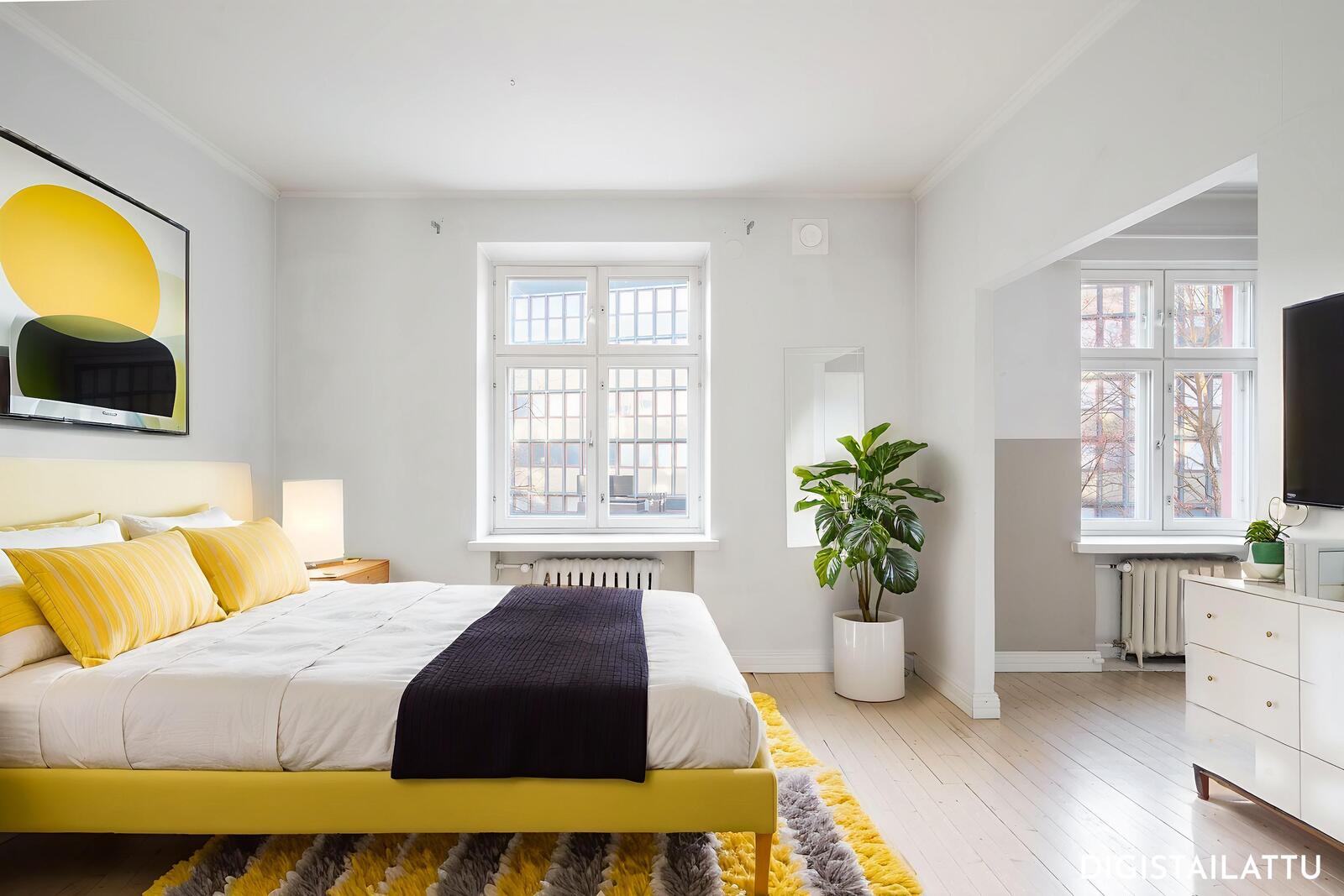 Avara ja helposti muunneltava yksiö, josta saa tarvittaessa myös toimivan kaksion. Vuonna 1926 valmistuneen talon tunnelma näkyy korkeissa huoneissa, leveissä ikkunalaudoissa sekä alkuperäisessä lautalattiassa. Asunto sijaitsee hissitalon 3/7 kerroksessa, ja sen ikkunat avautuvat rauhalliselle sisäpihalle.