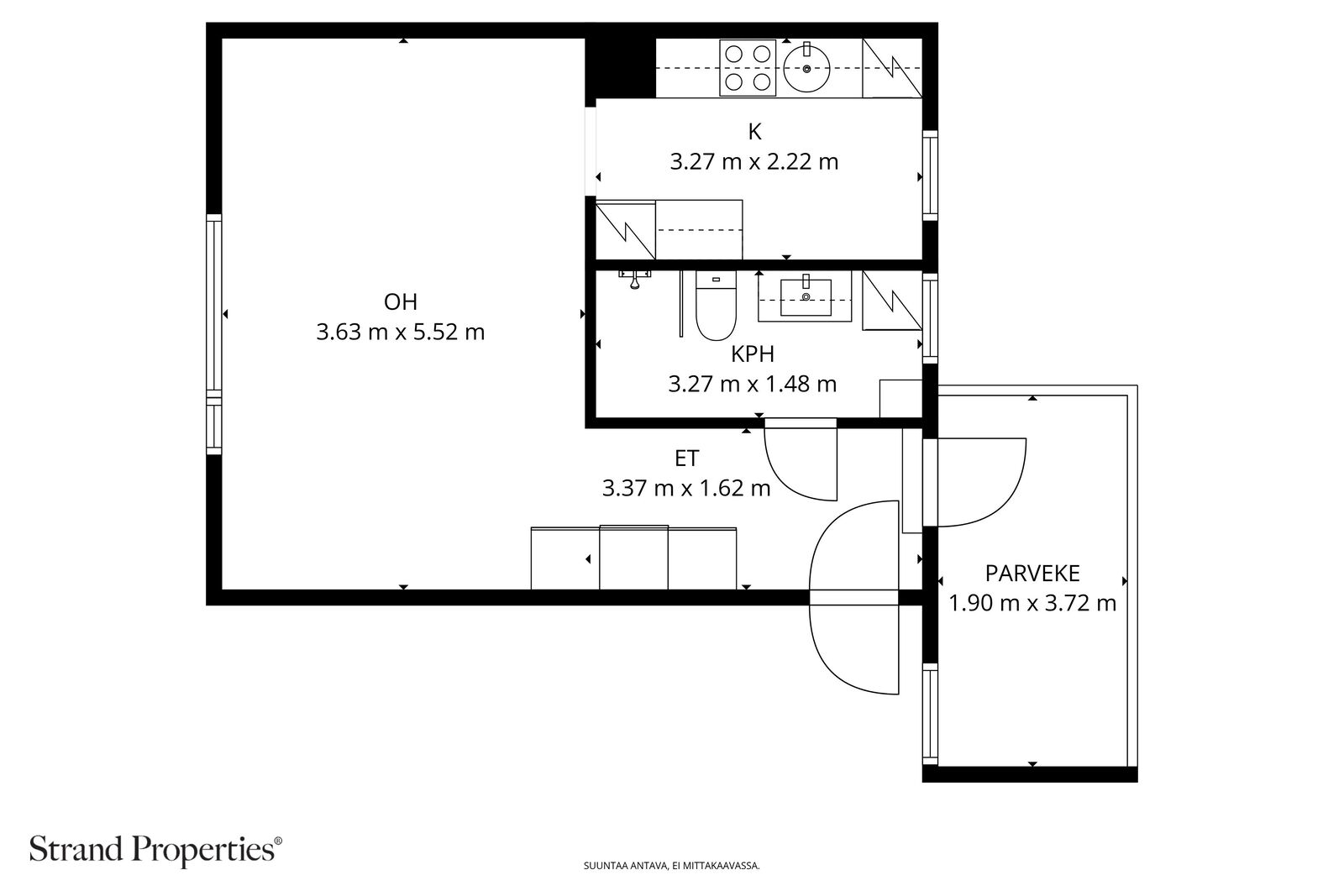Asunto on hyvässä kunnossa ja pohjaratkaisu on selkeä ja toimiva, tuoden avaruutta ja valoa tilaan. Hissillä pääsee sujuvasti ylimpään kerrokseen.