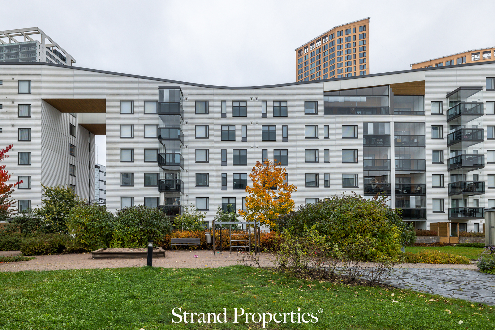 Meri, uimaranta, venesatama ja upeat ulkoilureitit ovat kävelymatkan päässä. Kauppakeskusen runsaat ja kattavat palvelut, metroasema, kirjasto, posti, apteekki, ravintoloita jne. ovat kaikki helposti saavutettavissa.