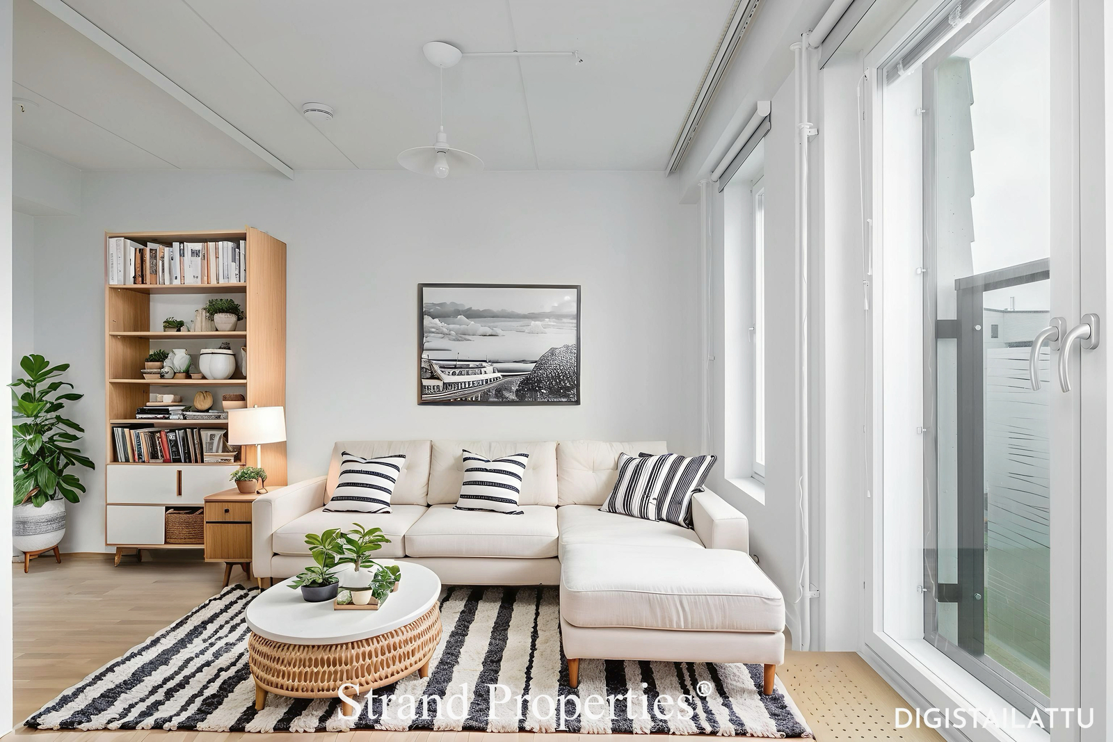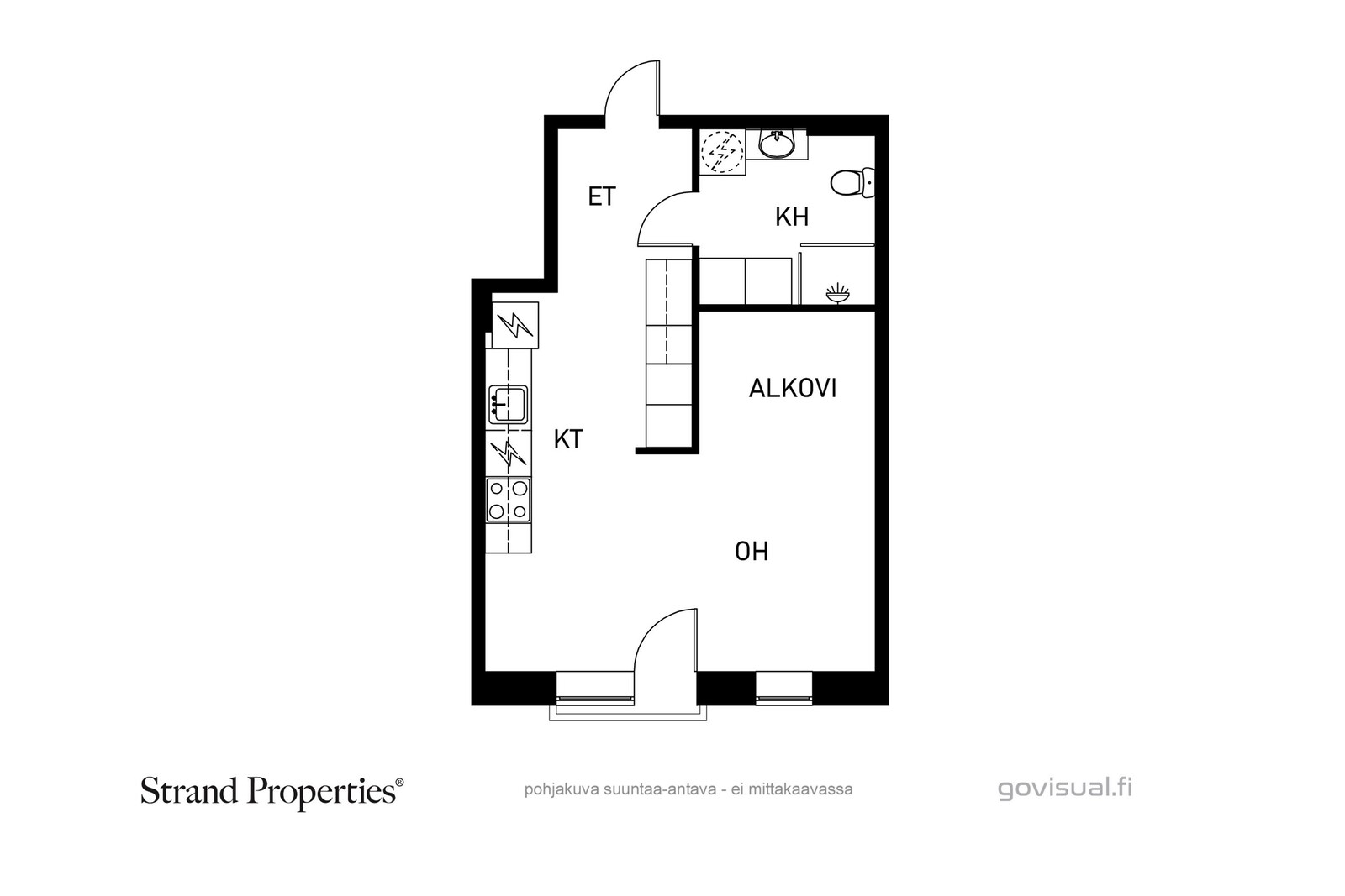 - Tehokas pohjaratkaisu: Olohuone, alkovi, ruokailutila ja avokeittiö