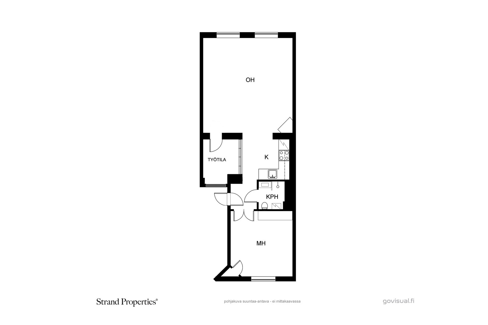 Asunnon huikean korkeat huoneet (noin 3,6metriä), alkuperäiset lautalattiat ja valkoinen kaakeliuuni luovat aivan erityisen tunnelman. Valoa tulvii sisään suurista ikkunoista. Avara olohuone yhdistyy vuona 2022 uusittuun keittiöön, jonka konstailematon tyyli ja ajattomat materiaalit sopivat saumattomasti kodin ilmeeseen. Asunto on esitelty Deco lehdessä Suomessa ja Popeye ja FUDGE lehdissä Japanissa. Pohjaratkaisua on muutettu ammattilaisen suunnitelmien mukaan nerokkaasti ja huoneistoon on saatu käytännöllinen tila, joka soveltuu moneen käyttöön ja moneen tarpeeseen.