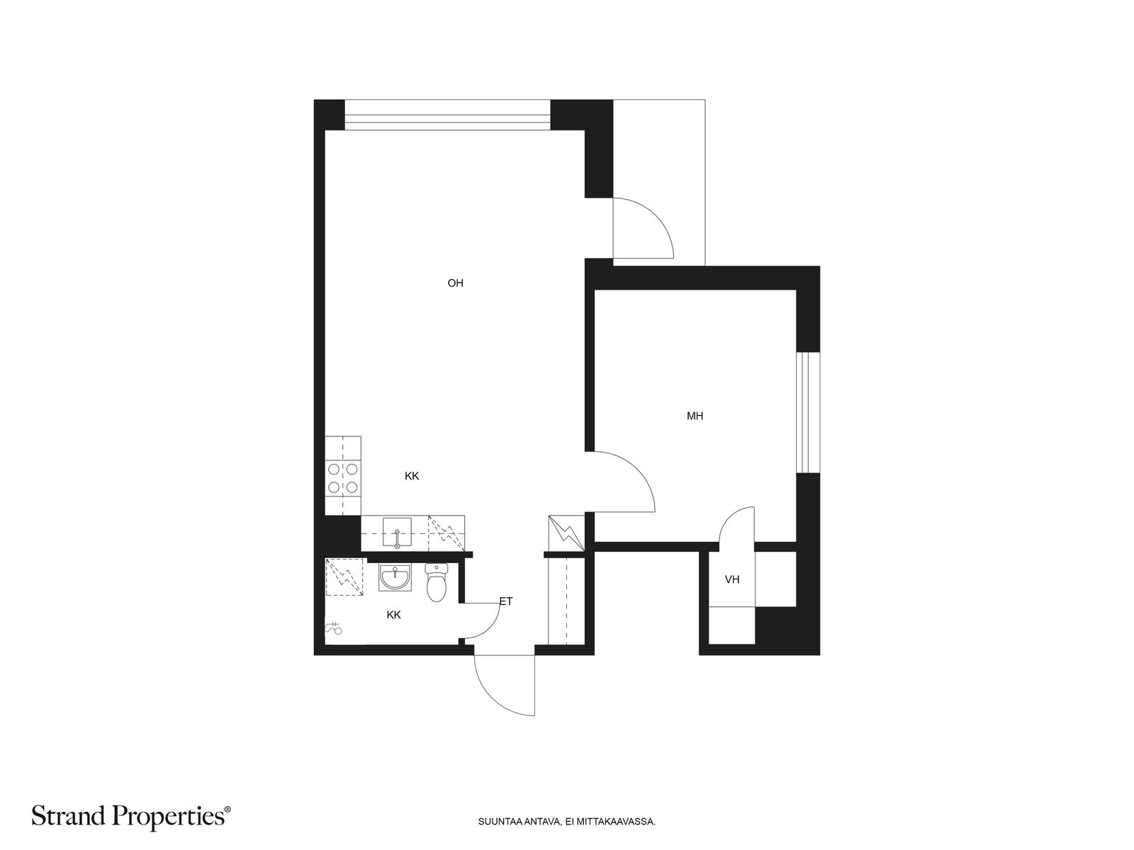 Viihtyisän kulmahuoneiston 41 neliötä pitävät sisällään kaiken, mitä sujuvaan arkeen tarvitaan. Suuret ikkunat tuovat sisätiloihin runsaasti luonnonvaloa, jonka ansiosta koti tuntuu raikkaalta ja ilmavalta. Tyylikäs avokeittiö yhdistyy olohuoneeseen, jossa on tilaa niin oleskelulle kuin ruokailulle. Oleskelutilojen jatkeena on parveke, johon on ihana kattaa kesäaamujen aamiaiset.