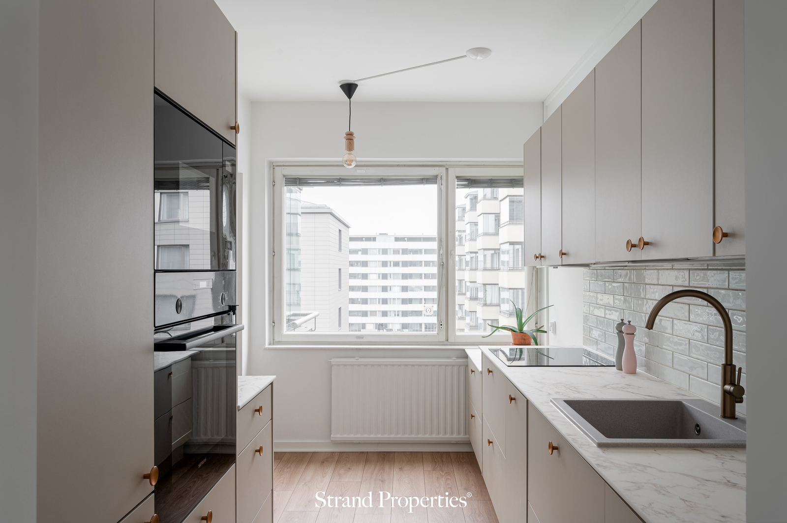 Tämä ydinkeskustassa sijaitseva koti tarjoaa rauhallisen keitaan vilkkaan kaupunkielämän keskellä. Asunto on juuri kauttaaltaan remontoitu, eikä tiloissa ole vielä asuttu remontin jälkeen. Harmoninen sävymaailma ja huolella valitut materiaalit luovat yhtenäisen ja tyylikkään kokonaisuuden, jossa jokainen yksityiskohta on tarkkaan harkittu. Suurista ikkunoista avautuvat näkymät mm. Puutorille.