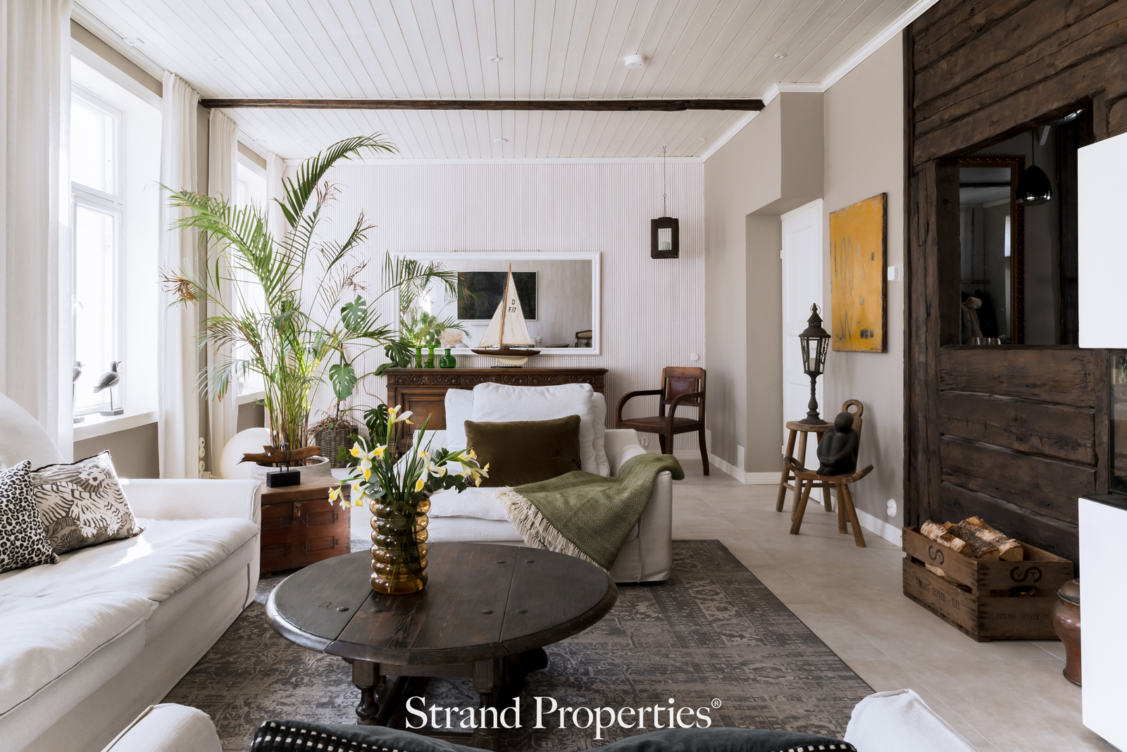 Kodissa huomio kiinnittyy heti avaruuteen ja valoon. Alakerran korkea huonekorkeus ja suuret tilat luovat ilmavan ja kutsuvan tunnelman. Keittiö on todellinen kodin sydän - siellä on runsaasti tilaa kokata, kokoontua ja nauttia yhteisistä hetkistä. Iso ruokapöytä mahtuu vaivatta, ja tila kutsuu viihtymään pitkien illallisten äärellä. Olohuone jatkaa samaa avaraa linjaa, ja tarvittaessa tilasta on helppo erottaa lisähuone. Tunnelmaa luovat kauniisti esiin jätetyt, yli sadan vuoden ikäiset hirsiseinät sekä takka, jonka äärellä on helppo rentoutua vuodenajasta riippumatta.