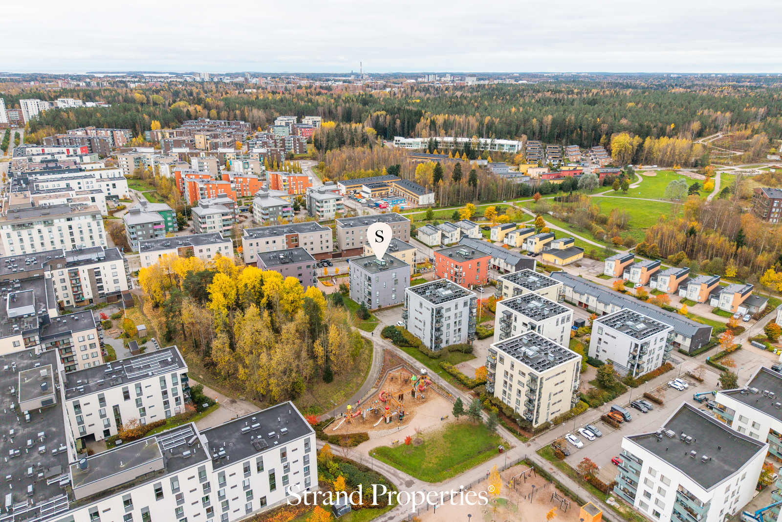 Suurpelto on kehittyvä ja arvostettu alue, jossa palvelut, koulut ja Opinmäen kampus ovat lähellä. Kauppakeskus Suuris palvelee kävelyetäisyydellä, ja Espoon keskuspuiston lenkkipolut sekä Kabiksenkallion kuntoportaat löytyvät aivan vierestä. Liikenneyhteydet ovat sujuvat: bussilla pääsee metroliitäntään ja kehä II:lle autolla muutamassa minuutissa.