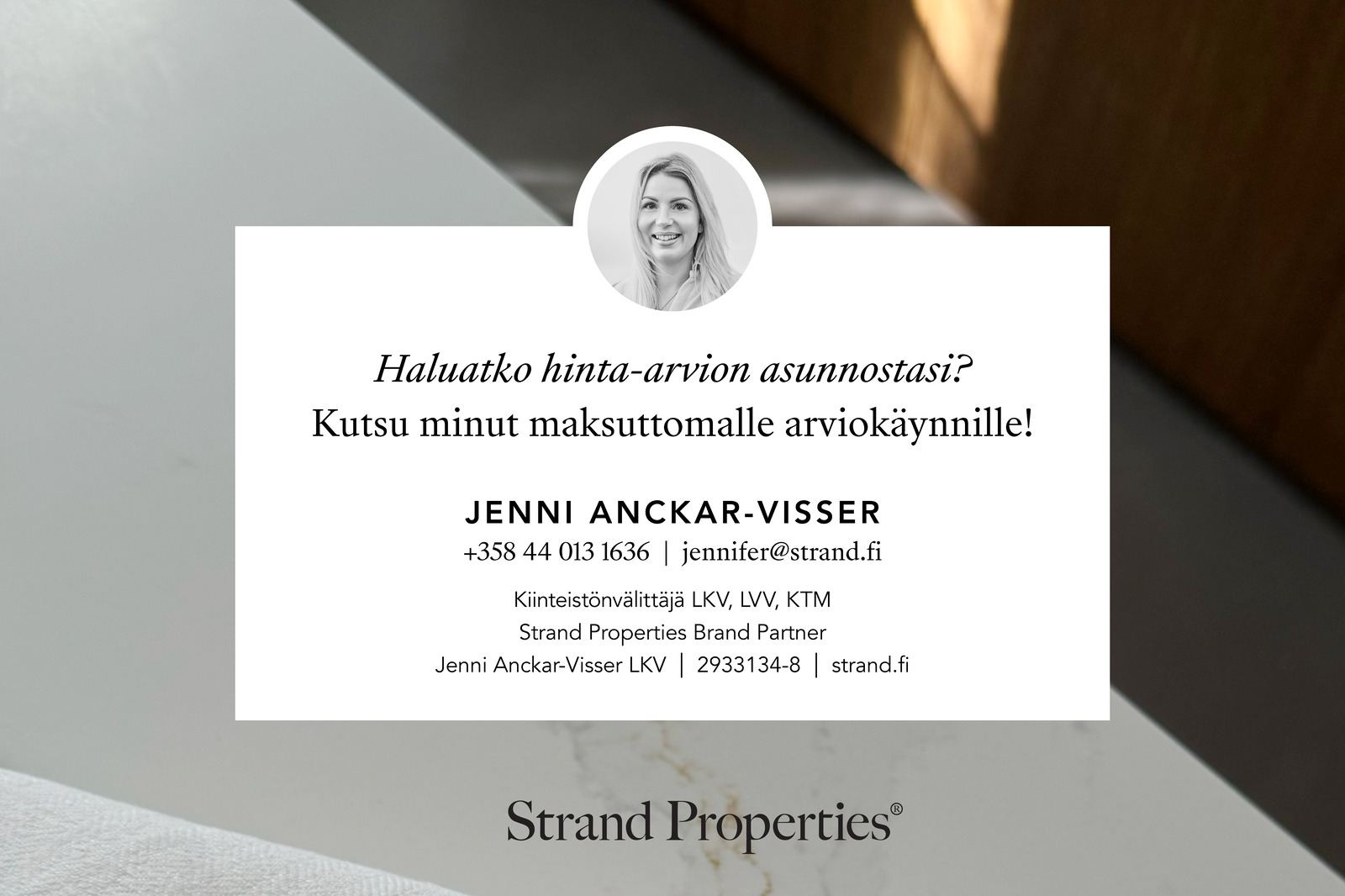 Jenni Anckar-Visser jennifer@strand.fi +358 44 013 1636 Strand Properties Brand Partner,