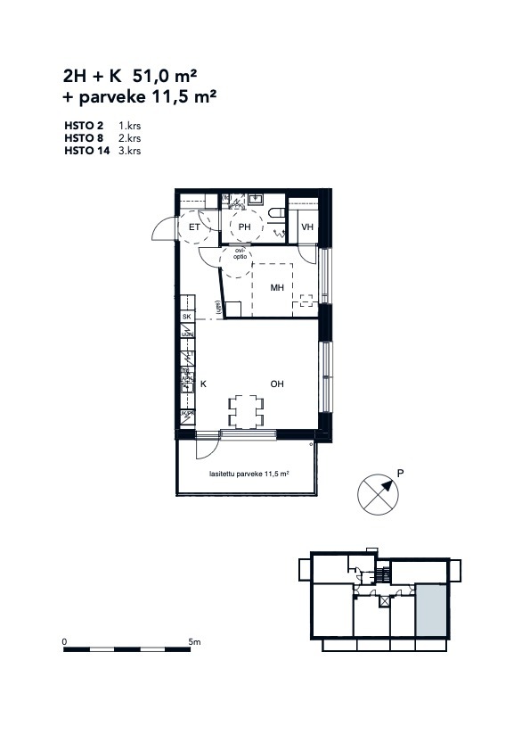 • Asuintilojen pinta-ala 51 m²
