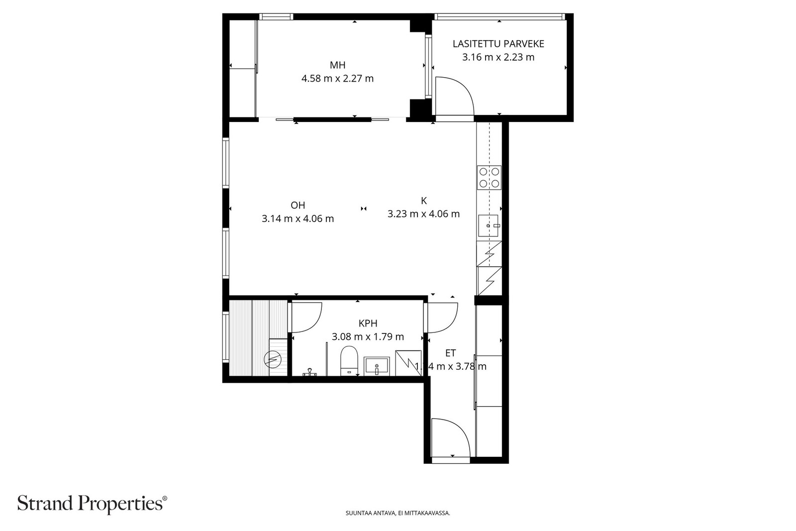 Asunnon pohjaratkaisu on suunniteltu maksimoimaan olohuoneen ja ruokailutilan väljyys, siellä missä elämä tapahtuu. Suuret olohuoneen ikkunat avautuvat upeasti suoraan Telakkapuistoon.