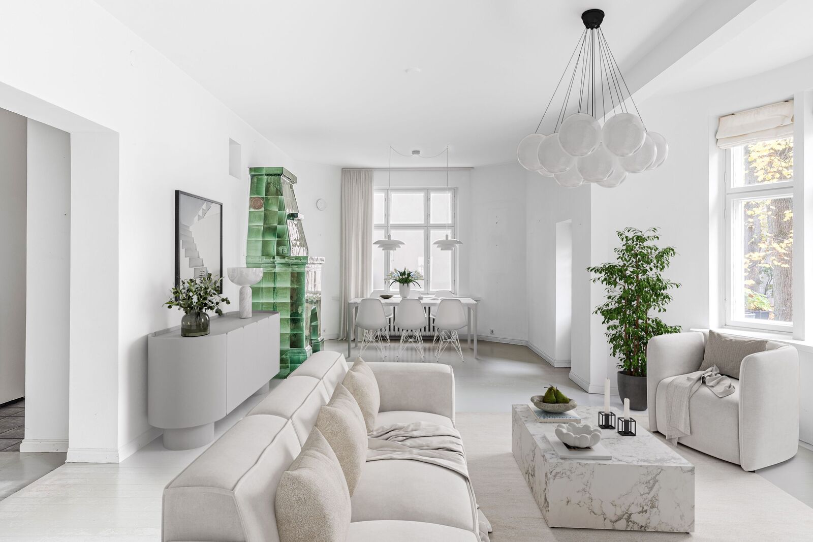 Tilava olohuone/ruokailutila, josta käynti asunnon kauniille parvekkeelle. Vieressä hyvin toimiva ja viihtyisä keittiö. Rauhallinen makuuhuone, jossa vaatehuone. Asuntoon on taitavasti suunniteltu säilytystilaa ja arkea helpottavia ratkaisuja. Asunto on kauttaaltaan remontoitu 2001. Kauniit korkeat ikkunat, huonekorkeus, takat ja vaalea öljyvahattu lautalattia tuo erityistä viihtyvyyttä ja tilan tuntua.