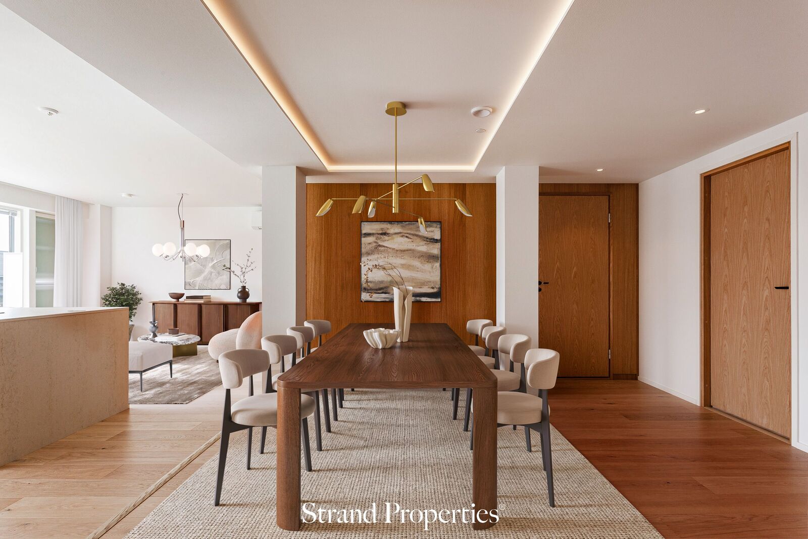 Upeilla merenrantanäkymillä varustettu valoisa ja tilava läpitalonkoti 5. kerroksessa. Huoneiston vaaleassa ja rauhallisessa ilmeessä on lämpöä hiekan ja tammen sävyistä, joita täydentävät harkitut tummat yksityiskohdat. Leveä lankkutammiparketti ja tammiviilutetut ovet, samoin kuin saunan, kylpytilojen ja keittiön pehmeä, epäsuora valaistus, sekä liiketunnistimella toimiva wc-valaistus tuovat arkeen harkittua mukavuutta.