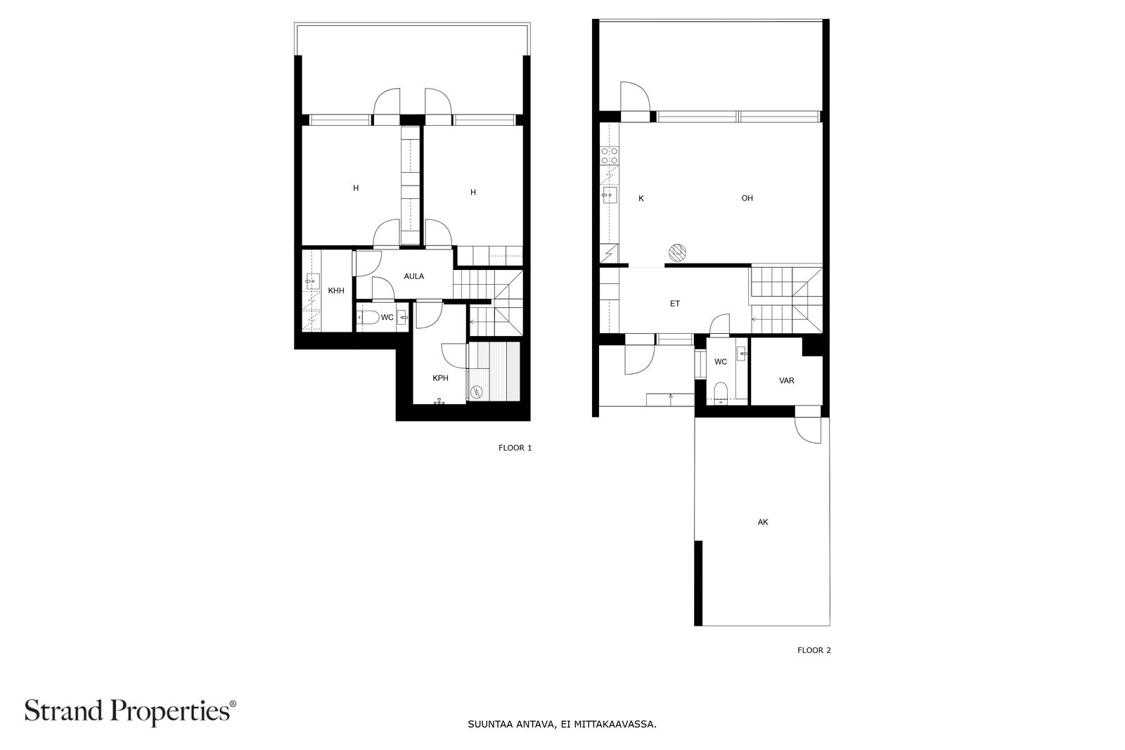 Sama tinkimätön linja jatkuu myös alakerrassa, jonka tilat keskittyvät lepoon ja työskentelyyn. Kaksi tilavaa makuuhuonetta pitävät sisällään runsaasti säilytystilaa. Molemmista huoneista on suora kulku alakerran terassille, jossa on poreallasvaraus. Kodinhoitohuone tuo käytännöllisyyttä ja arjen pienistä ylellisyyksistä nautitaan spa-henkisellä saunaosastolla.