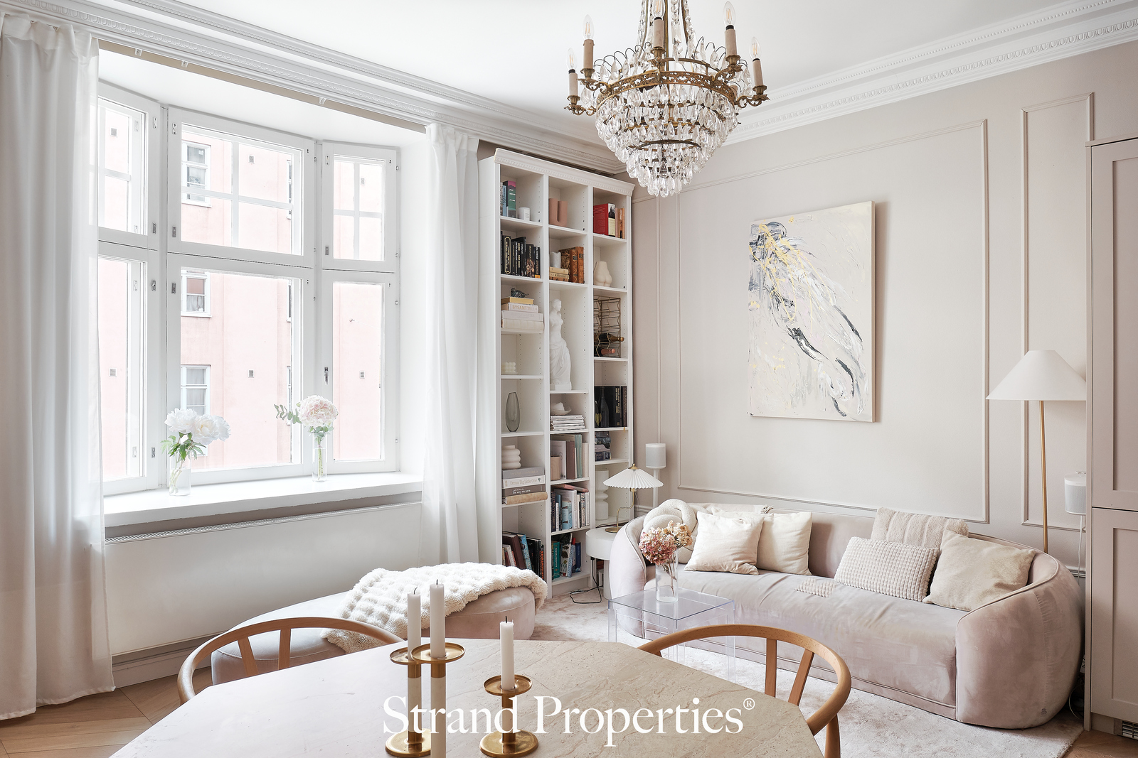 Tilavat makuuhuoneet sijoittuvat rauhalliselle sisäpihan puolelle ja olohuone/avokeittiö erkkeri-ikkunoineen avautuu rauhalliselle Fredrikinkadun loppupuolelle. Tuiki tärkeää säilytystilaa löytyy runsaasti!