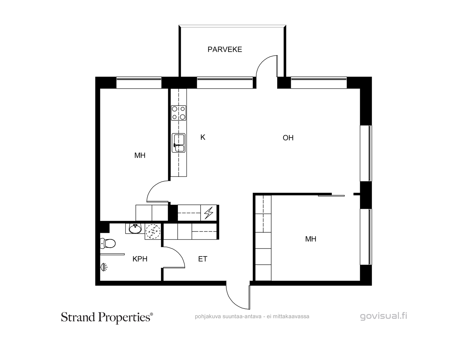 Tilavasta olohuone/avokeittiöstä on käynti lasitetulle parvekkeelle. Parveke avautuu länteen.
