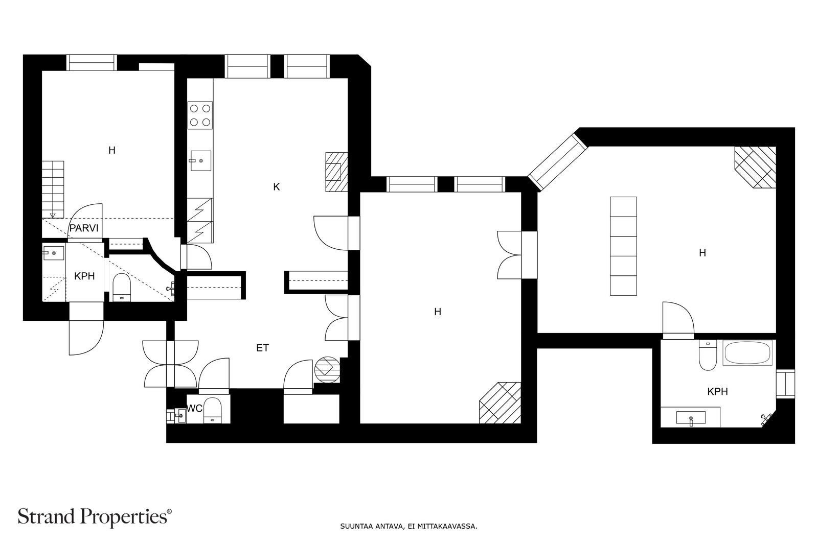 Kauppiaankatu is undoubtedly one of the most desirable and beautiful addresses in Katajanokka. The seaside atmosphere, green parks, waterfront promenades, charming cafés, quality restaurants, and cultural attractions are all right at your doorstep. The city center is just a short walk away, yet the neighborhood remains calm and welcoming. This home offers a unique blend of historic charm, modern comfort, and a first-class location.