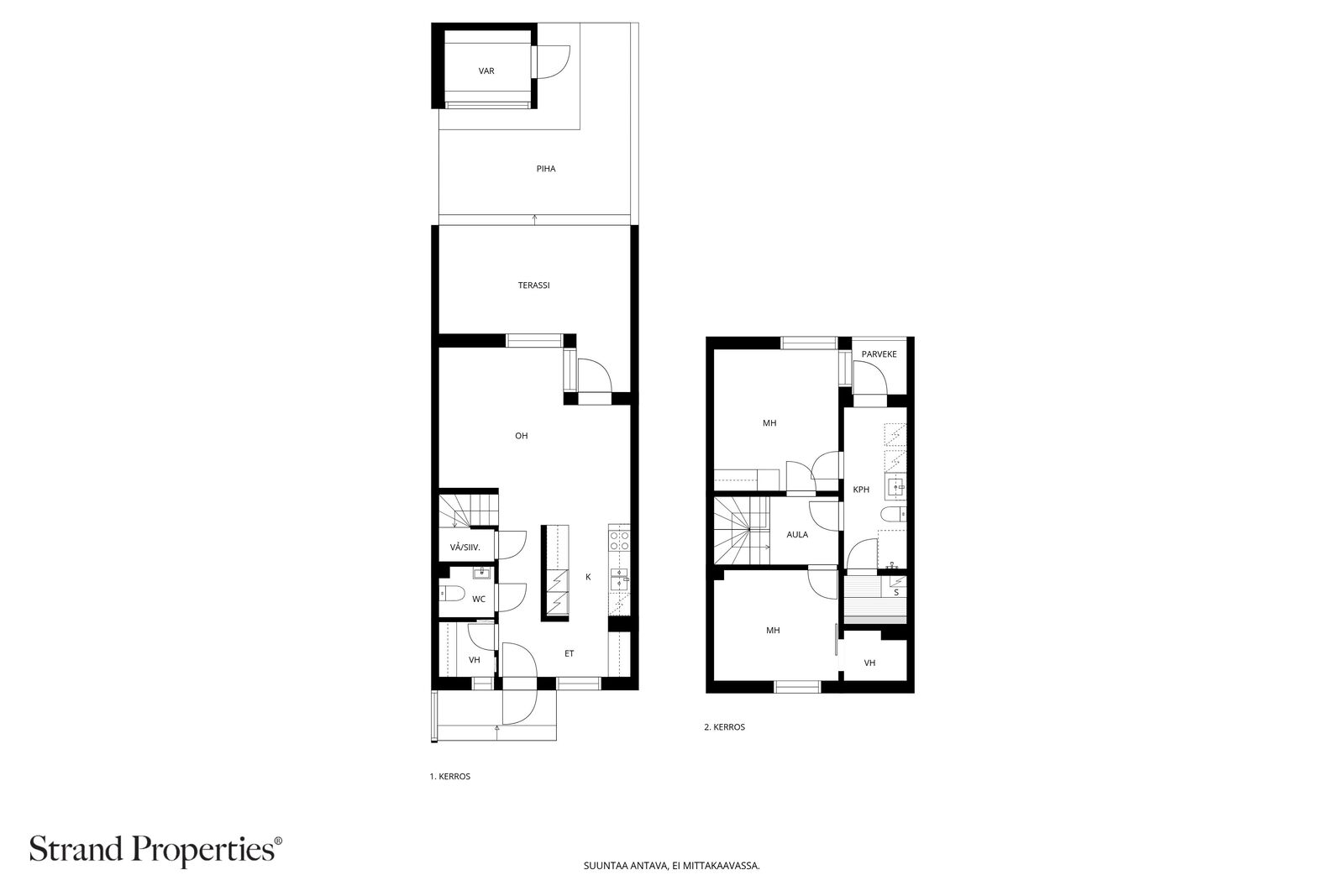 Tämä kahteen kerrokseen sijoittuva koti tarjoaa toimivan pohjaratkaisun ja viihtyisän, vehreän ympäristön. Yläkerrassa sijaitsevat makuuhuoneet muodostavat oman rauhallisen maailmansa, jossa sijaitsee myös kylpyhuone ja sauna, sekä parveke vilvoittelua varten.