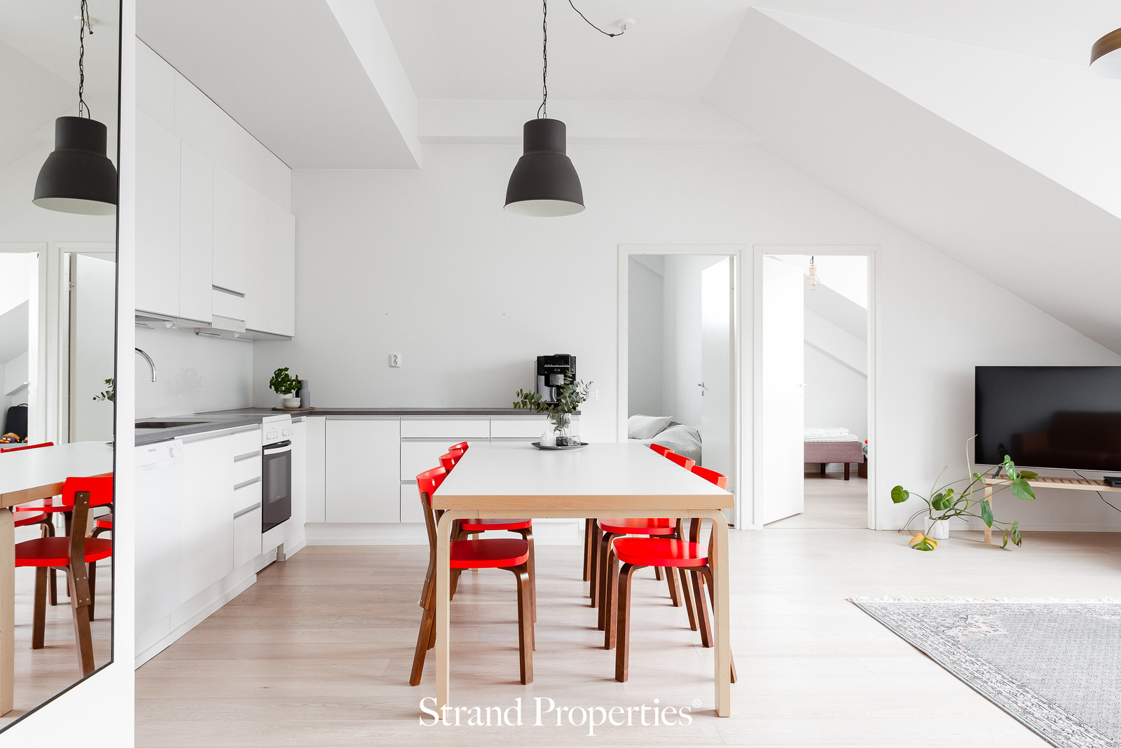 Tämän kolmannen kerroksen koti ja sen 71,5-neliöiset asuintilat mukautuvat vaivattomasti eri elämäntilanteisiin - täällä viihtyy niin pariskunta kuin pieni perhekin. Runsas luonnonvalo ja korkeat huoneet tuovat kotiin ainutlaatuista raikkautta.