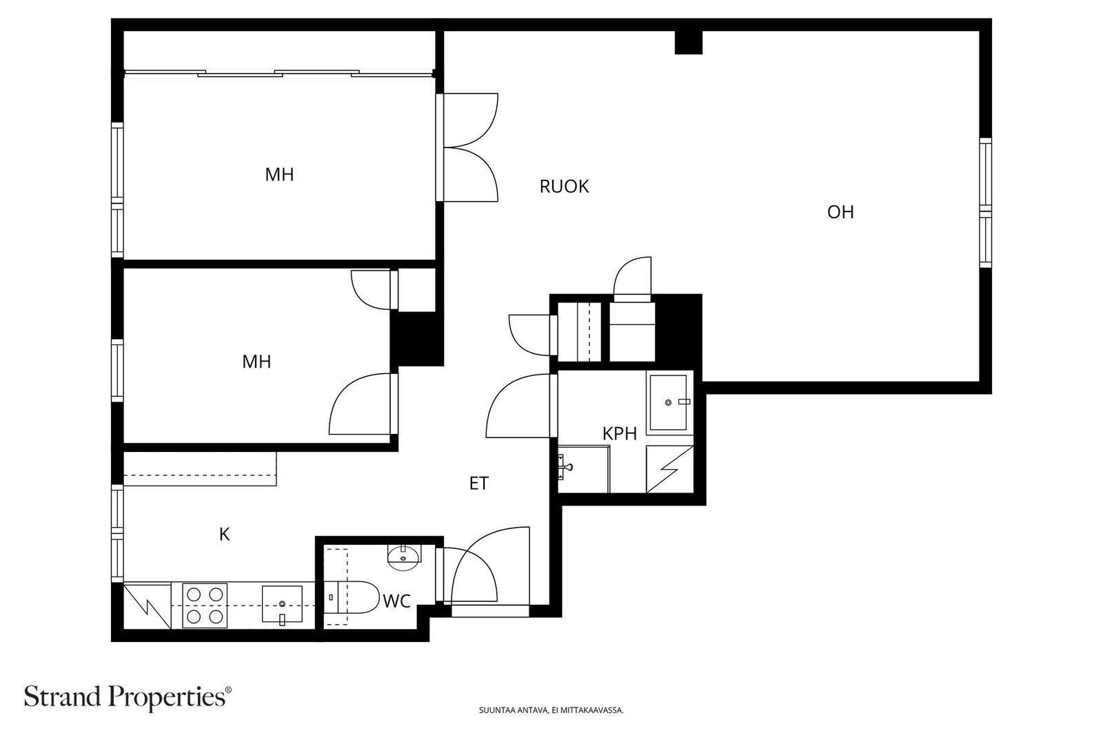 Kodin sydän on hyvin varusteltu, linjakas ja ajaton keittiö, jossa kokkaus sujuu tyylillä. Kaksi makuuhuonetta, joista päämakuuhuone hurmaa kauniilla pariovilla ja käytännöllisellä, seinän levyisellä liukuovikaapistolla, tarjoten runsaasti säilytystilaa. Moderniin kylpyhuoneeseen mahtuu pesukone ja lisäksi kodista löytyy erillinen wc arjen sujuvuutta lisäämään.