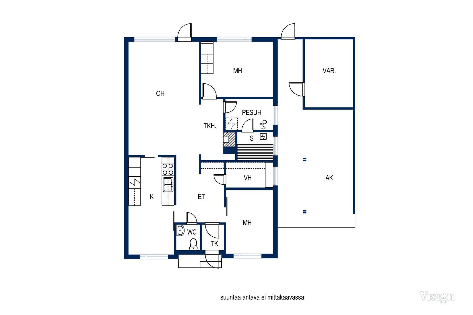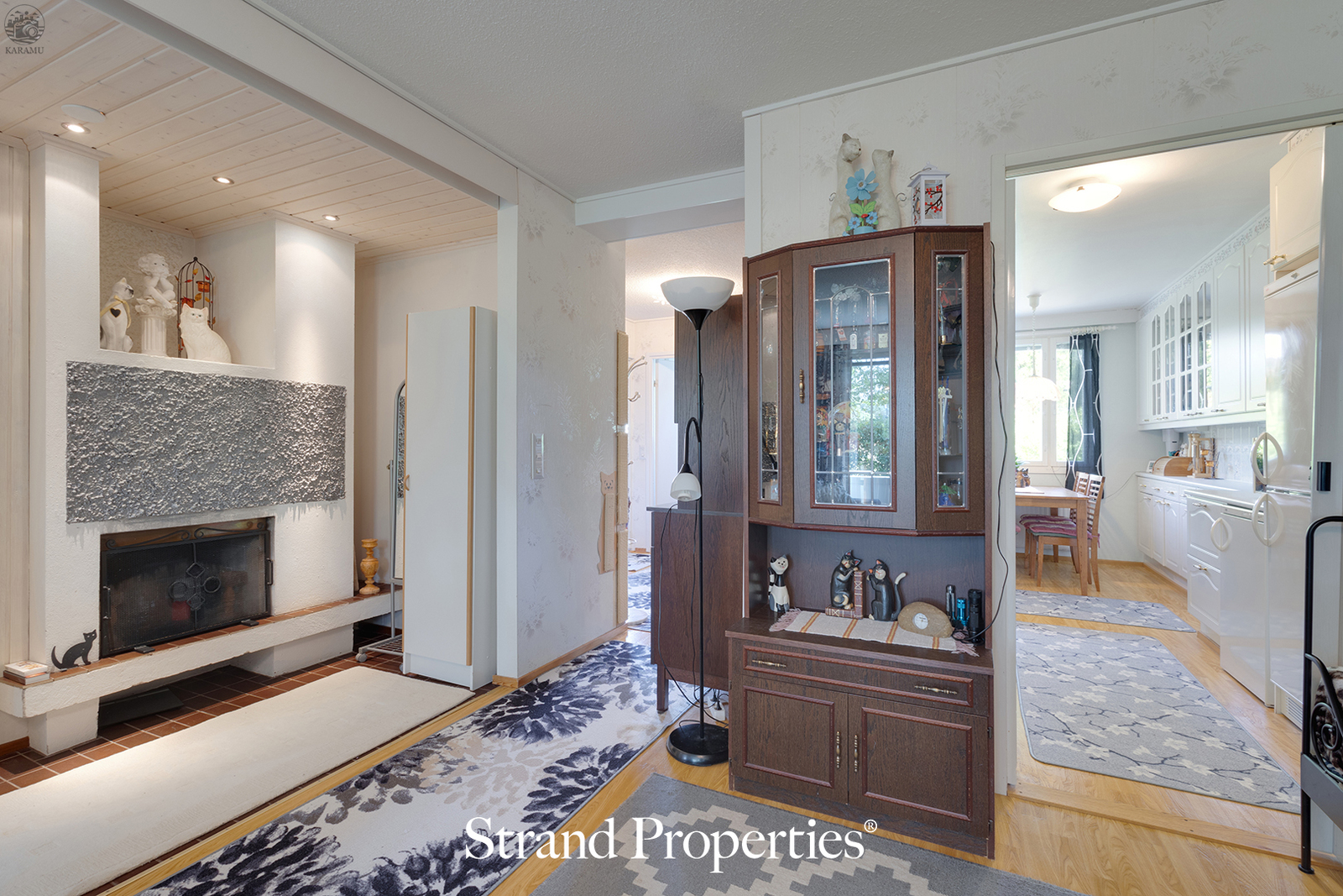 Heti sisään tulossa on asunnon keittiö. Keittiöön saatu mahtumaan paljon kaappi- ja laskutilaa. Olohuoneen isosta ikkunasta tulvii valoa tähän ihanaan asuntoon. Olohuoneesta on kulku aidatulle takapihalle, jossa terassin lisäksi on pieni nurmialue. Kesällä aurinko paistaa keskipäivästä iltaan asti. Olohuoneessa on takka, jonka vieressä voit rentoutua vaikka lempikirjaasi lukien.