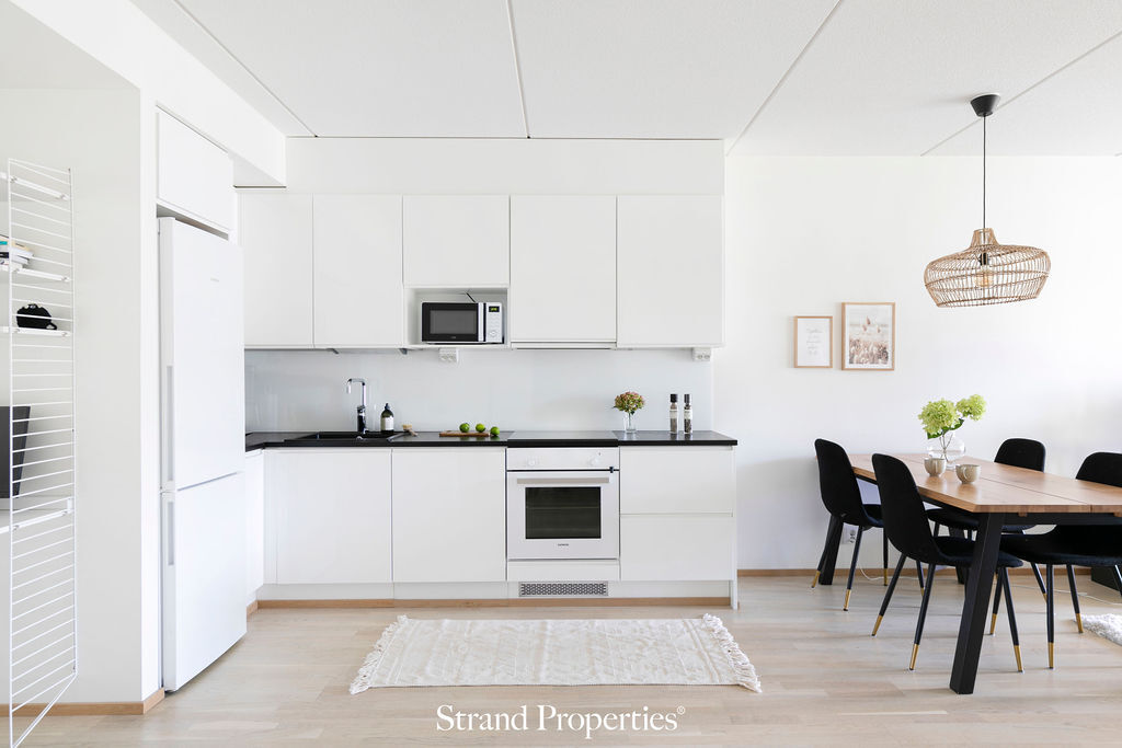 • Keittiön varustelu Ajattoman kaunis vaalea keittiö. Jääkaappi/pakastin, astianpesukone, liesi, uuni, liesituuletin. Lattiat parkettia, seinät maalattu.