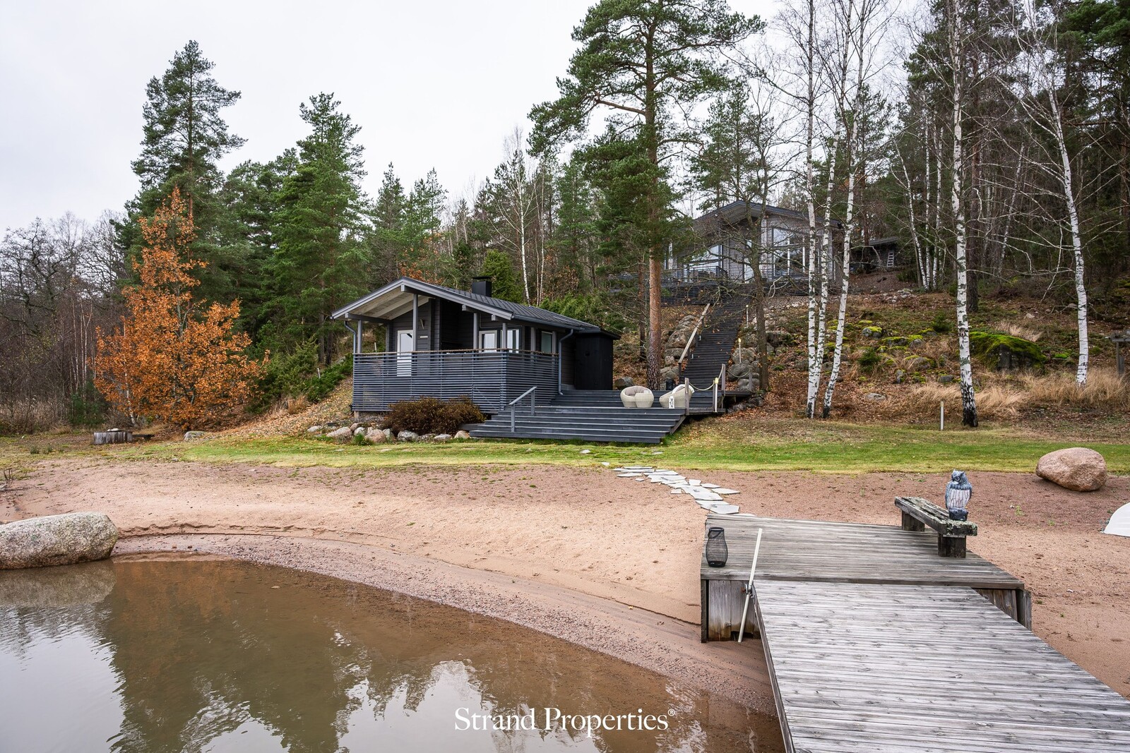 Jo päärakennuksen ovelle astuessa tunnelma on vaikuttava. Korkea huonetila, valoa tulvivat suuret ikkunat ja esteetön merinäkymä tekevät ensivaikutelmasta unohtumattoman. Vaaleat sävyt, lautalattiat ja hirsipinnat luovat modernin skandinaavisen tyylin, joka sulautuu kauniisti luonnon ympäristöön. Keittiö on suunniteltu nautiskelijalle. U-mallinen keittiö on remontoitu vuonna 2018 ja tarjoaa rutkasti säilytys- ja laskutilaa sekä laadukkaat integroidut kodinkoneet. Erkkerin äärellä ruokailu muuttuu elämykseksi, kun meri kimaltaa ikkunan takana. Tilava olohuone jatkuu suoraan koko kiinteistön mittaiselle terassille, joka tarjoaa useita oleskelualueita ja täydellisen paikan nauttia merituulesta ja auringonpaisteesta. Terassilta löytyy myös ulkoporeallas, jossa voit rentoutua auringon säteissä tai talviyön tähtitaivaan alla. Lisäterassia on myös rantasaunan edustalla, jossa aamukahvi tai iltauinti saa arvoisensa ympäristön. Päärakennuksessa on kaksi viihtyisää makuuhuonetta, joissa uni tulee väistämättä levolliseksi.
