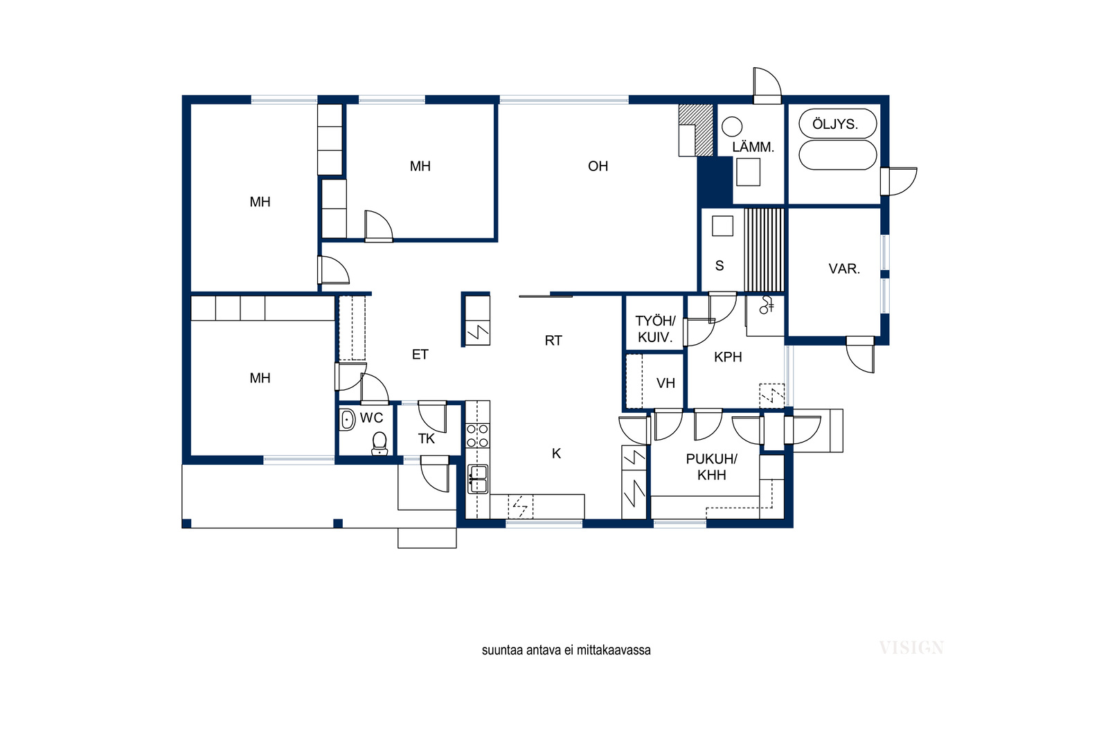• Huoneistoselitelmä 3mh, oh, k, ph, s, wc, khh, lämmin varasto