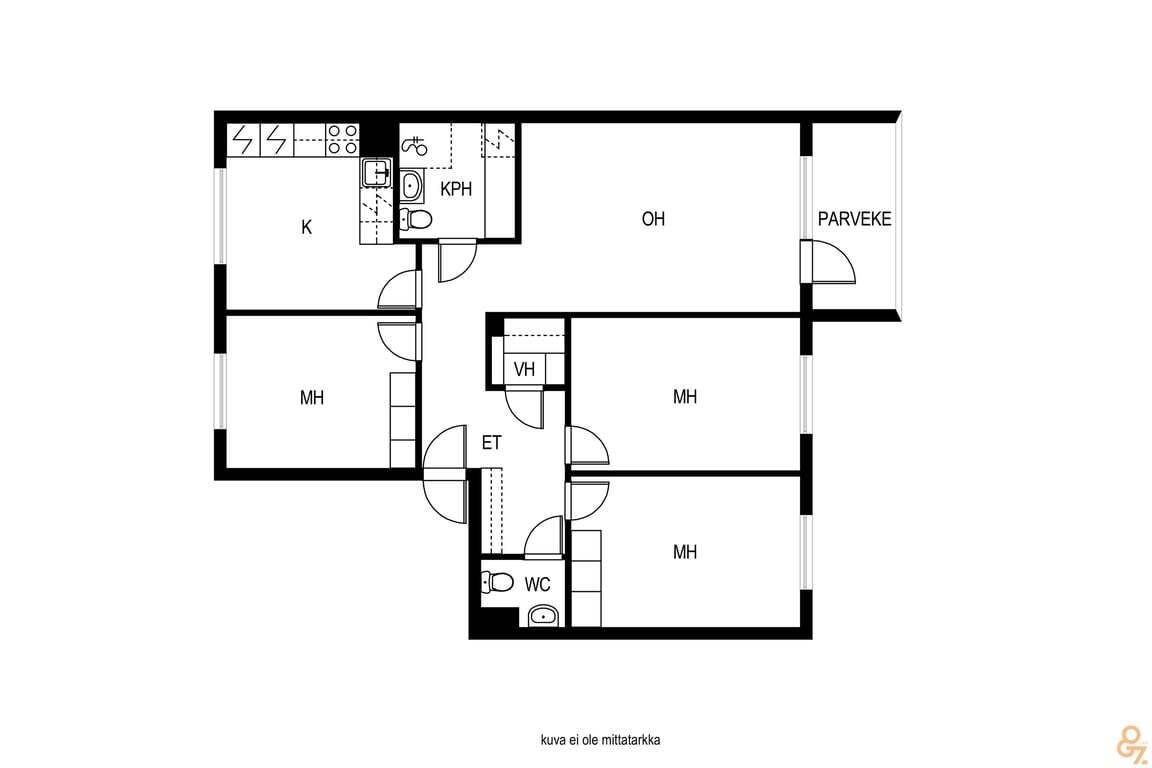 Asunnon hyvin suunniteltu pohjaratkaisu palvelee erinomaisesti myös isompaa perhettä – neliöt jakautuvat tasaisesti ja huoneet ovat tilavia. Keittiö on uusittu vuonna 2016 ja se on edelleen ajanmukainen ja erinomaisessa kunnossa. Varusteluun kuuluu muun muassa keraaminen liesi ja integroitu mikro.
