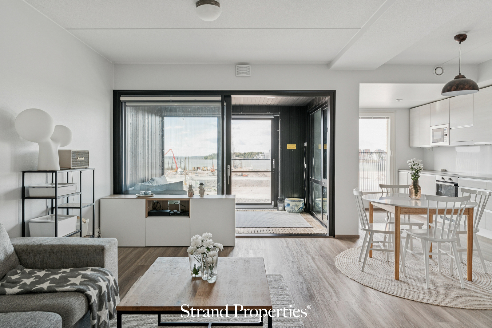 Lisäksi vierestä löytyvät ratikkapysäkit, päiväkodit, koulut ja lähikaupat. Tulevina vuosina alueelle valmistuu vielä pienvenesatama, kävelybulevardi ja uusia palveluita, jotka vahvistavat entisestään alueen vetovoimaa.