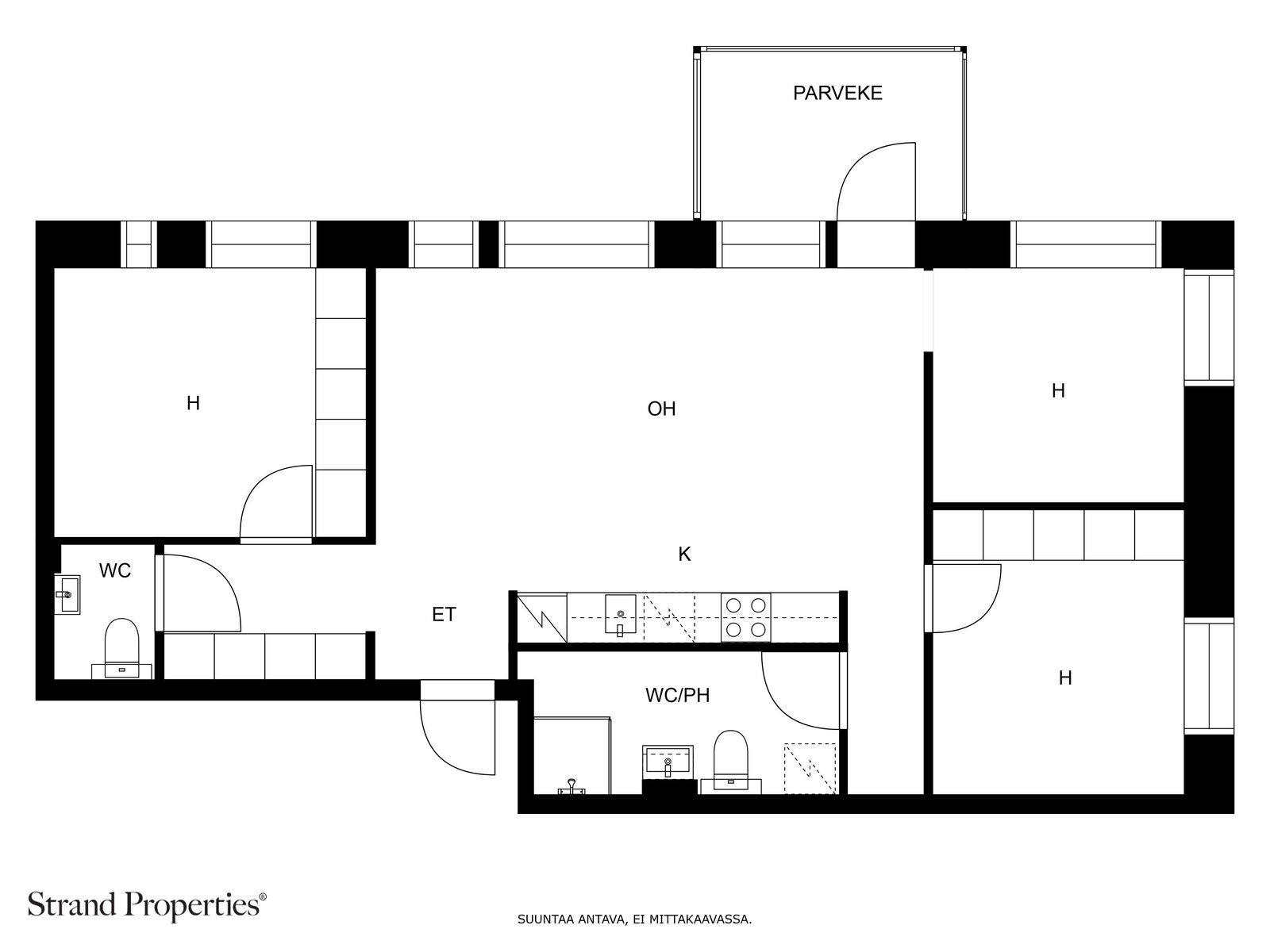 Tervetuloa tutustumaan tähän valoisaan perheasuntoon Kalasatamassa! Kodissa on kolme makuuhuonetta, tilava olohuone avokeittiöineen, moderni kylpyhuone sekä erillinen wc. Tyylikäs tammiparketti ja vesikiertoinen lattialämmitys tuovat arkeen laatua ja mukavuutta.