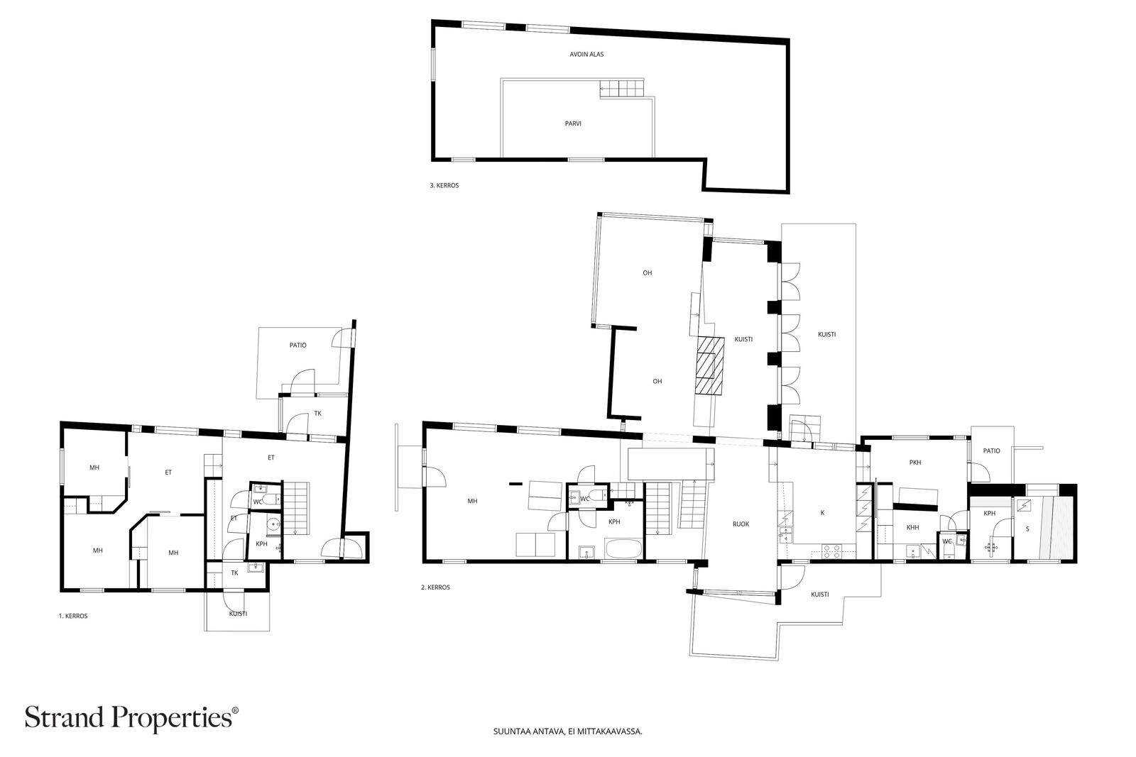 Yläkerran pesutilojen yläpuolella sijaitseva parvi tarjoaa rauhallisen paikan työskentelyyn. Ruokailutilaan mahtuu suurikokoinen pöytä, ja sieltä avautuu kulku aamiaisterassille, jossa päivän saa aloittaa aamuauringosta nauttien. Keittiöstä puolestaan on suora yhteys yläpihan patiolle, joka kutsuu ruokailemaan ilta-auringon valaistessa pitkiä kesä-iltoja. Tunnelmallinen sauna ja sen lauteiden huolellinen muotoilu takaa rentouttavat hetket päivän päätteeksi.