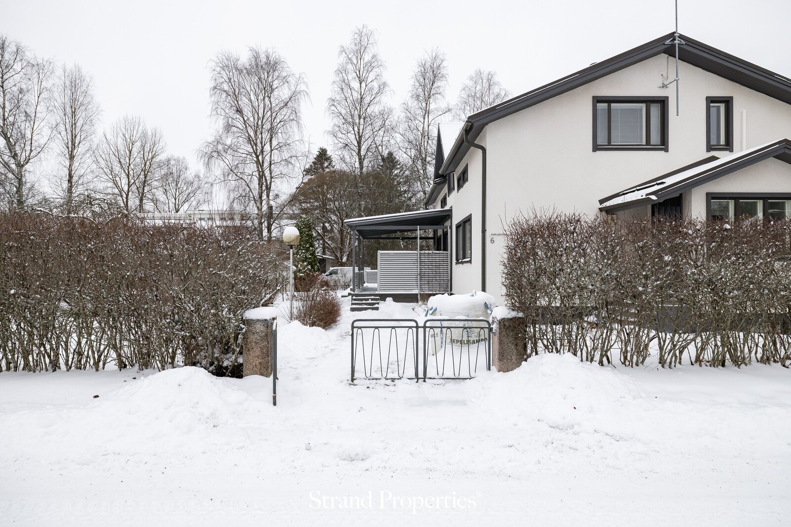 Keittiö ja olohuone muodostavat avaran ja valoisan kokonaisuuden keskikerroksessa. Olohuoneen suuri ikkunarivistö avautuu suojaisalle pihalle, jossa vehreys ja rauha ovat läsnä vuoden ympäri. Olohuoneesta pääset myös katetulle, tilavalle terassille joka tarjoaa täydelliset puitteet kesäpäivien ruokailuille ja iltojen tunnelmalle.
