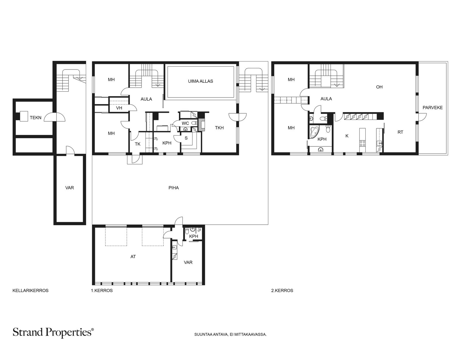 Erillinen keittiö tarjoaa ripauksen luksusta, sillä Mielen kodinkoneet, kivitasot ja korkeatasoiset kaapistot tukevat kodin korkeaa laatutasoa. Alakerrassa tunnelmallinen takkahuone uima-altaan yhteydessä avautuu suoraan terassille, luoden elämyksellisen kokonaisuuden vapaa-aikaan ja rentoutumiseen.