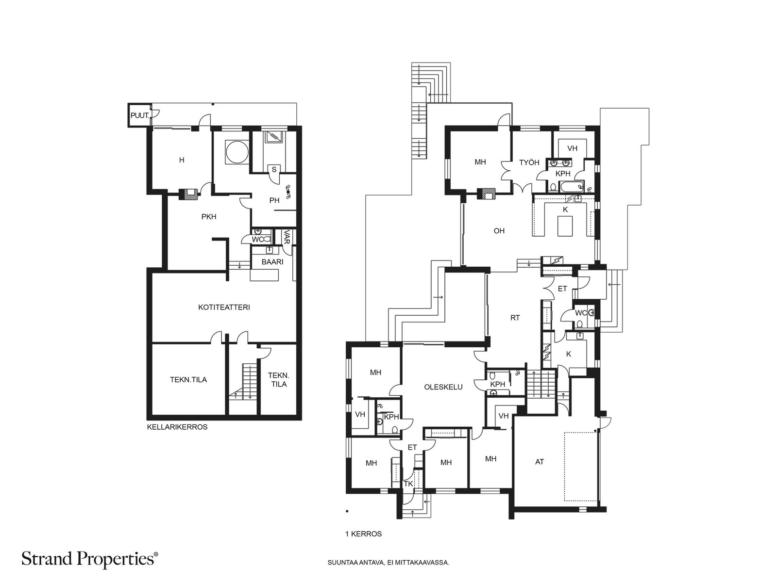 Alakerta on oma elämyksellisen maailmansa: upea saunaosasto vastakkain lautein ja pyöreällä poreammeella, kotiteatteri baarialueineen sekä kuntoiluhuone tarjoavat poikkeuksellisen upeat puitteet vapaa-aikaan. Alakerrasta avautuvat näkymät alapihalle, jossa tilaa riittää niin peleihin ja pihaleikkeihin kuin rauhallisiin hetkiin puutarhan parissa.