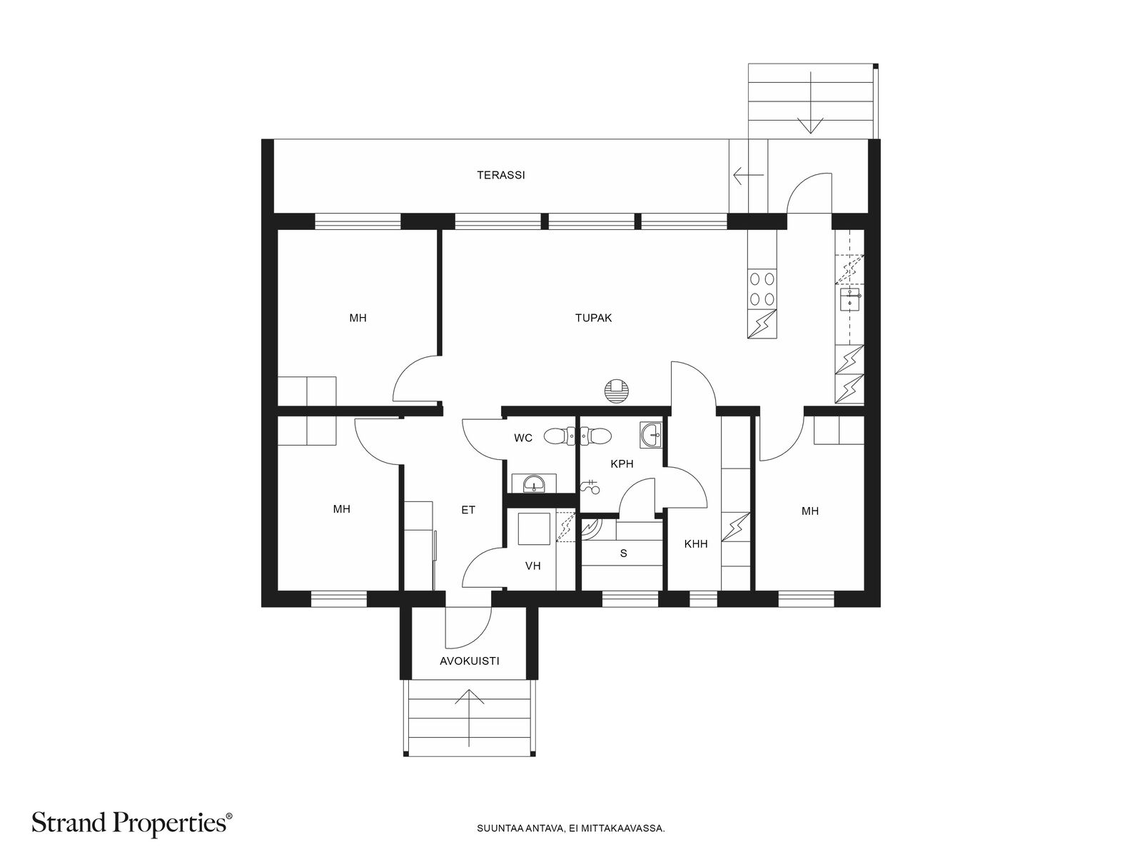 Yhteen tasoon toteutettu pohjaratkaisu on selkeä ja toimiva: kolme makuuhuonetta, tilava eteinen, kodinhoitotila sekä viihtyisä saunaosasto luovat puitteet vaivattomaan oleskeluun ympäri vuoden. Kohde myydään täysin kalustettuna ja valmiina käyttöön.