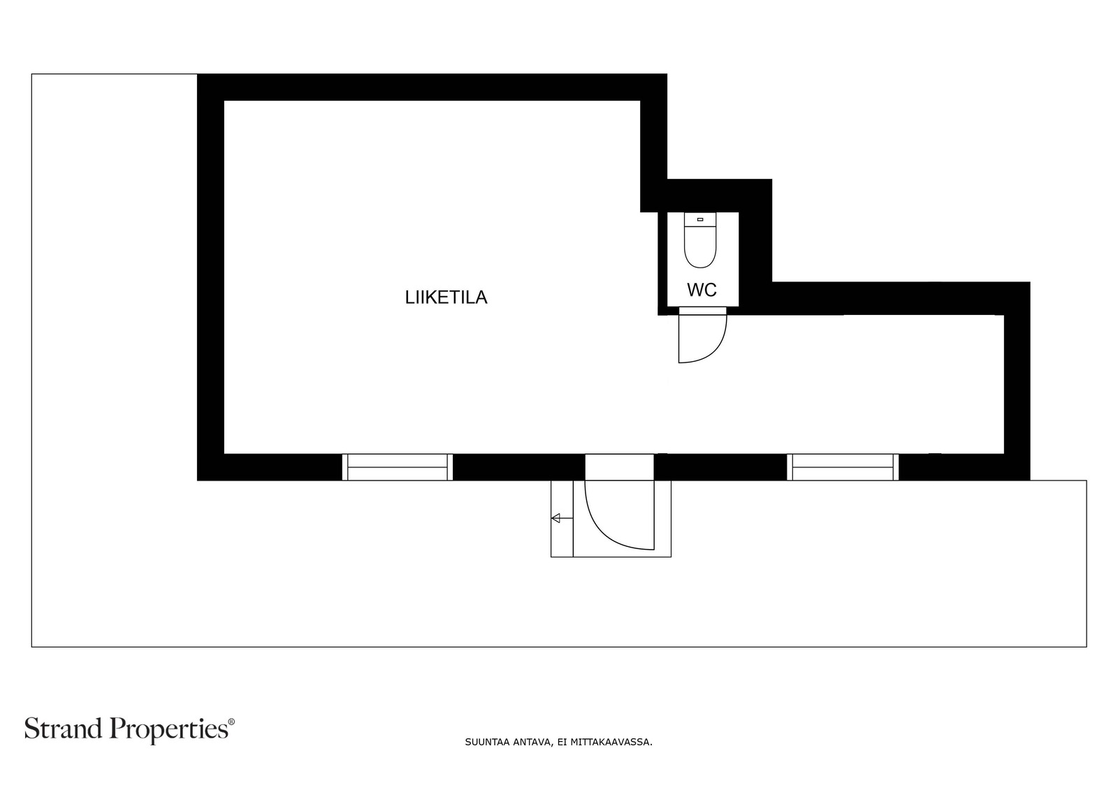 Huoneistossa on wc ja avoin tila, josta on mahdollisuus rajata esimerkiksi taukotila omaan käyttöön. Lisäksi huoneistoon kuuluu erillinen varasto ja yhtiön saunan käyttömahdollisuus. Tila myydään vuokrattuna.
