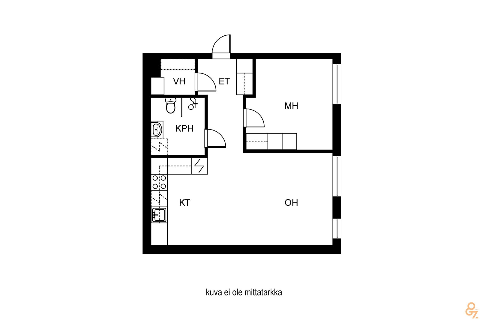 • Huoneita Kaksio