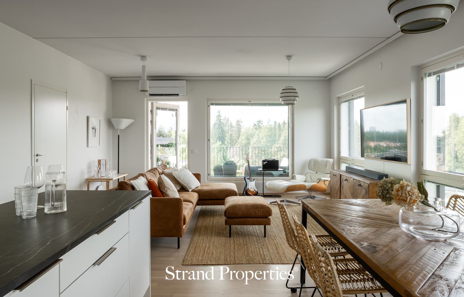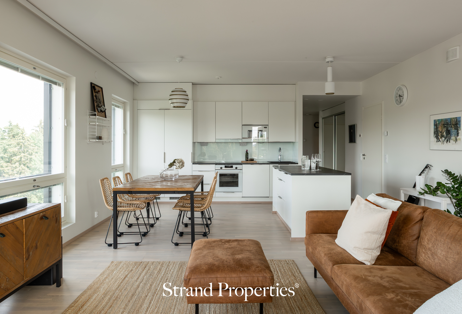 Avara ja valoisa olohuone muodostaa keittiön kanssa yhtenäisen, viihtyisän tilan yhdessäoloon ja arjen sujuvuuteen. Kolme makuuhuonetta tarjoavat omaa rauhaa ja toimivat mainiosti myös etätyöpisteinä. Iso lasitettu parveke avautuu upeasti Tampereen kaupungin keskustaan, ilta-aurinkoon. Parveke on täydellinen paikka aamukahville tai iltahetkelle.