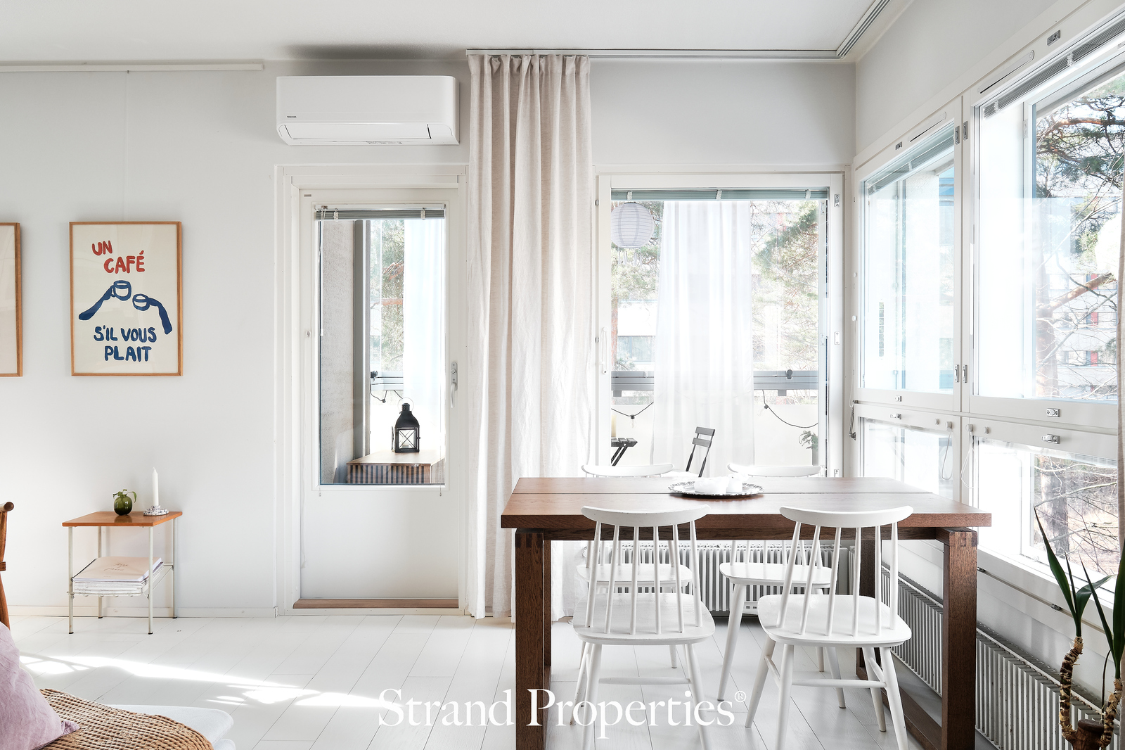 Seesteinen ja moderni, ajaton ja hyväpohjainen koti ylimmässä kerroksessa - tähän on helppo ihastua! Iso olohuone yhdistyy kauniiseen uusittuun avokeittiöön. Olohuoneesta on käynti lasitetulle parvekkeelle, johon mahtuu hyvin pieni sohva ja pöytä tuoleineen. Asuntoon on asennettu ilmalämpöpumppu, ja tämä koti pysyy mukavan viileänä kesän kuumimpinakin päivinä.