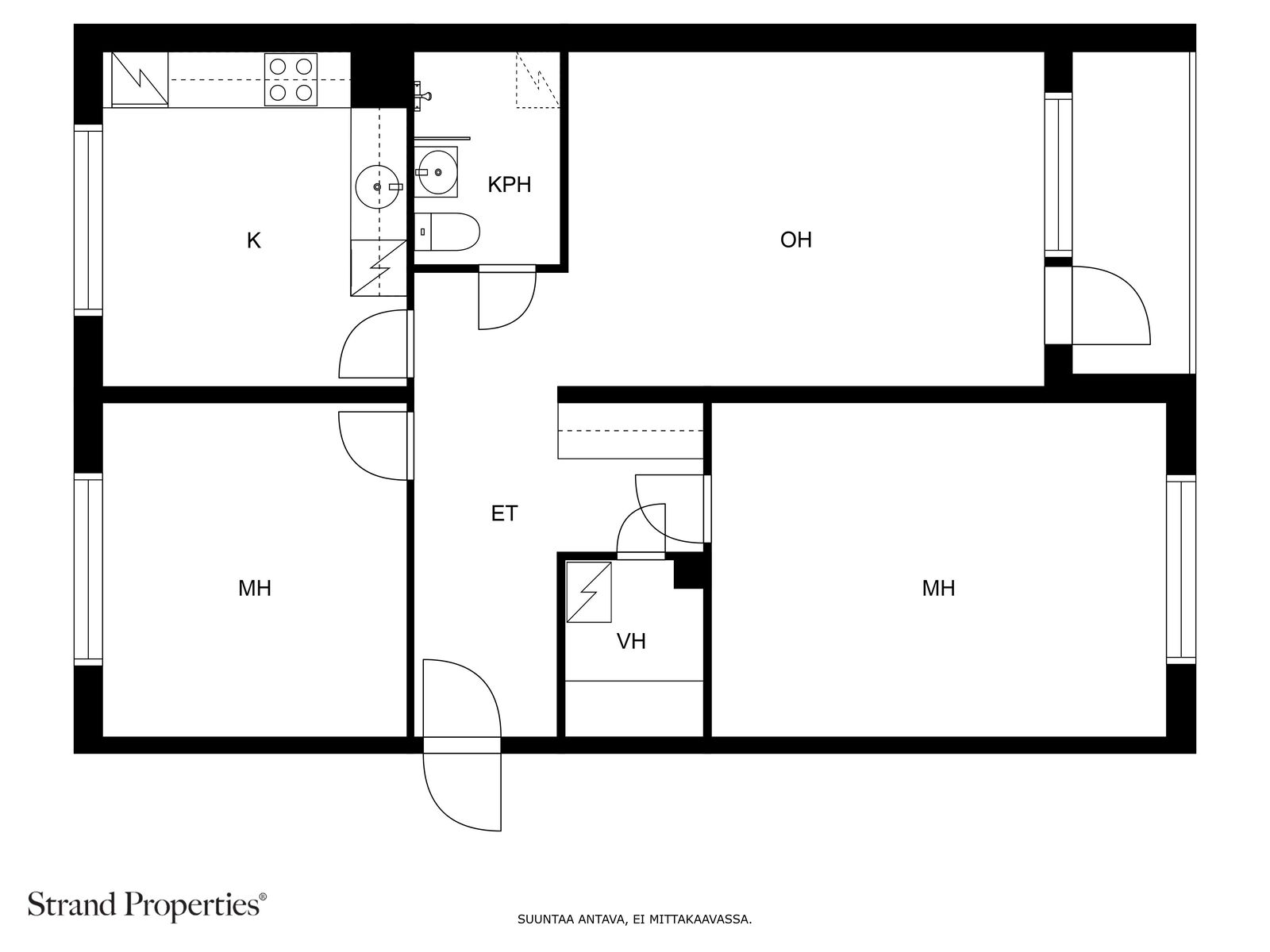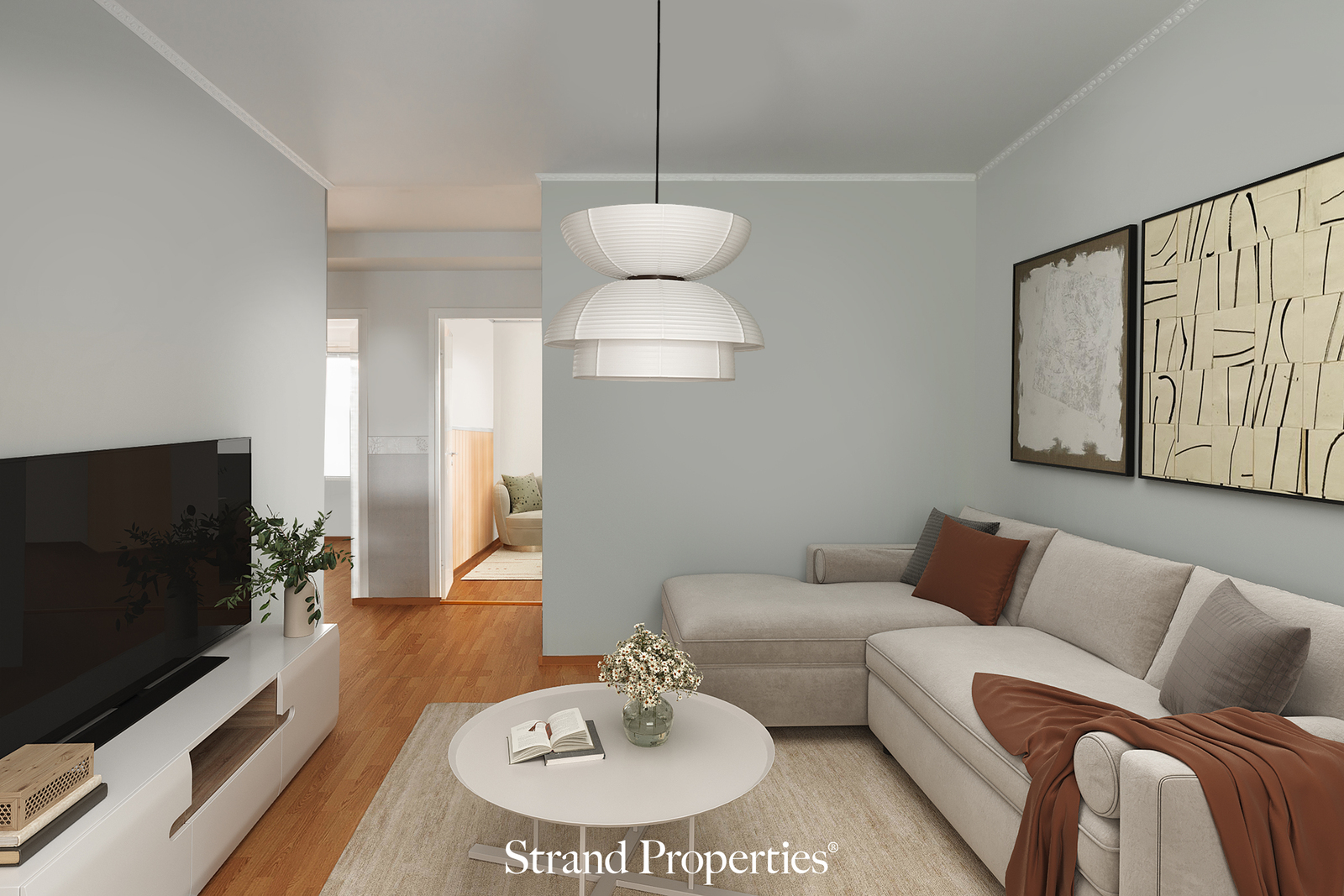 Aikakaudelleen tyypillinen selkeä pohjaratkaisu luo loistavan pohjan toimivalle arjelle ja tilavat huoneet tuovat väljyyttä. Erillinen keittiö kätkee sisäänsä runsaasti säilytys- ja työskentelytilaa ja paikkansa ikkunan alta löytää myös ruokailuryhmä. Tilavan olohuoneen jatkeena on viihtyisä lasitettu parveke, josta aukeaa vehreät näkymät sisäpihalle. Linjasaneerauksen yhteydessä remontoitu kylpyhuone on toimiva kokonaisuus, jossa on tilaa myös pyykinpesukoneelle.