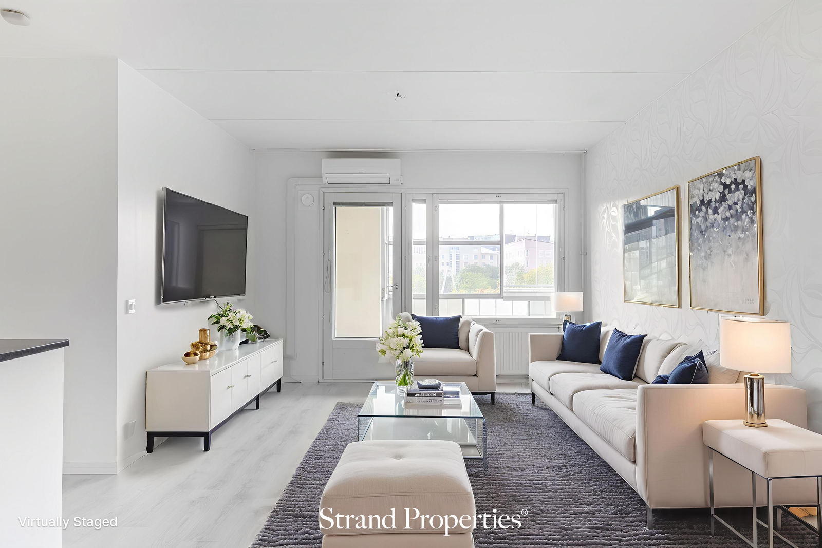 Viehättävä kolmio viihtyisässä Ruoholahdessa tarjoaa upeat puitteet kaupunkiasumiseen. Asunnon kaikista huoneista ja tilavalta parvekkeelta avautuvat rauhoittavat näkymät puiden yli suoraan Ruoholahden kanavalle.