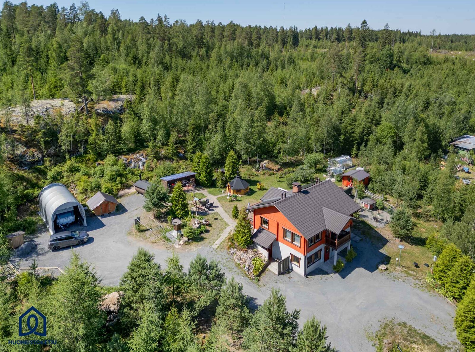 Omalla 8920m2 tontilla on hyvin tilaa hoitaa puutarhaa sekä lapsien leikkiä leikkejään. Pihassa on lisäksi erillinen tynnyrisauna, kesäkeittiö , varasto sekä kasvihuone.
