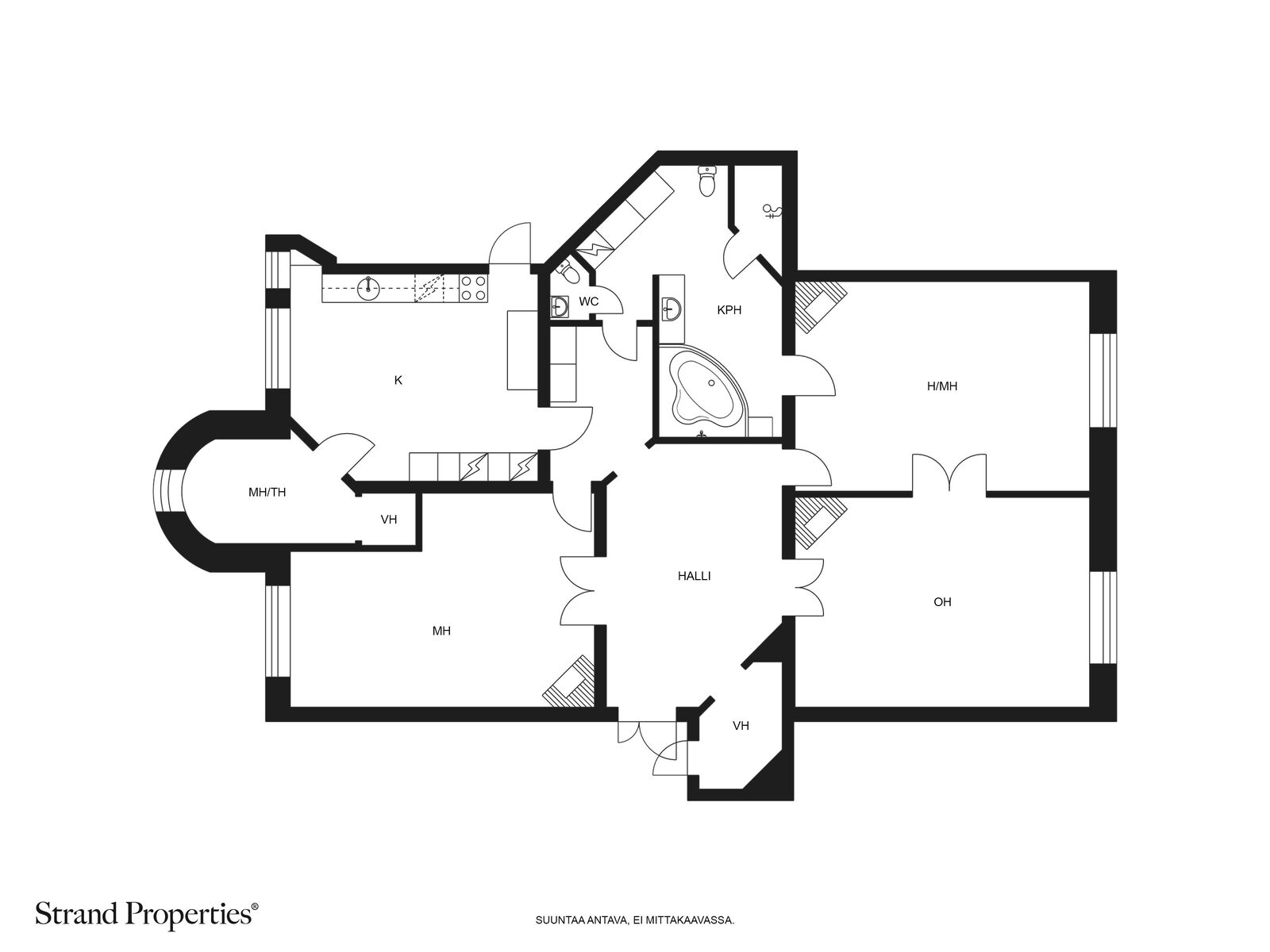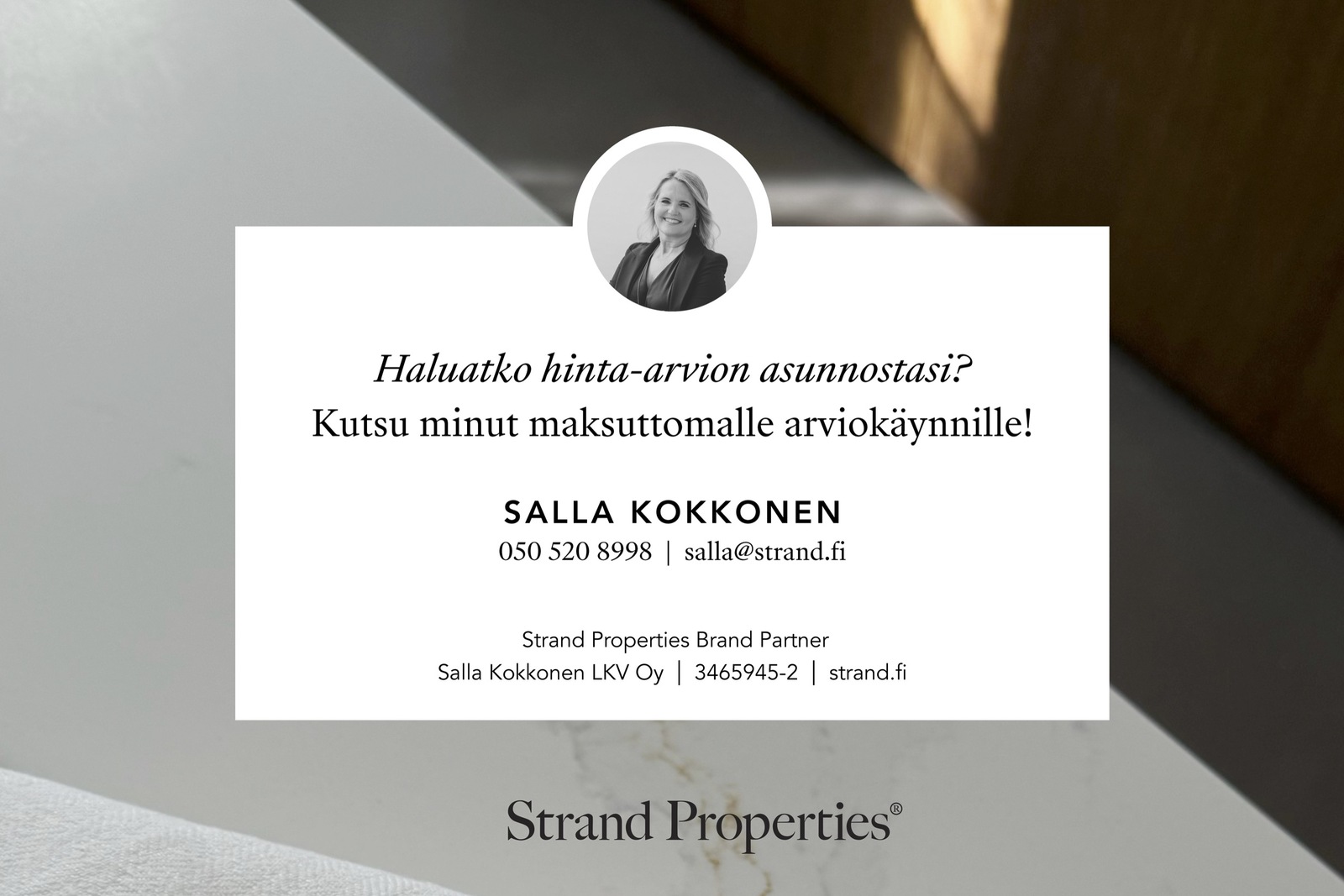 Jo sisään astuessa huomio kiinnittyy tilantuntuun ja korkeisiin huoneisiin. Kolme kakluunia, leveät ikkunat ja selkeä pohjaratkaisu luovat kotiin arvokkaan mutta lämpimän tunnelman. Kahdessa tilavassa makuuhuoneessa on rauhallinen ja levollinen ilmapiiri, ja pienemmän makuuhuoneen yhteydessä oleva parvi tuo joustavuutta esimerkiksi työ- tai vierastilaksi. Vuonna 2019 uudistettu keittiö toimii kodin sydämenä, jossa on tilaa niin arjen ruoanlaittoon kuin pitkille illallisille ystävien kanssa.
