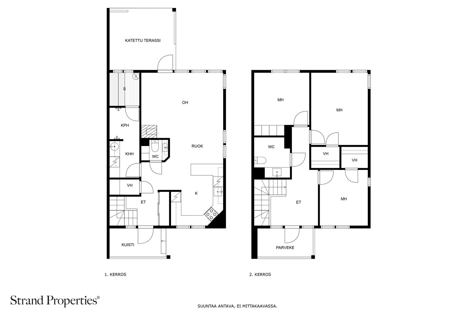 Alakerta on avara kokonaisuus, jossa keittiö, ruokailutila ja olohuone kohtaavat luontevasti. Varaava takka tuo lämpöä ja tunnelmaa, ja olohuoneesta on käynti katetulle terassille sekä suojaisalle pihalle. Oma sauna kruunaa päivän tarjoten rentouttavat hetket arjen keskelle ja eteisen yhteydessä oleva kodinhoitohuone helpottaa arkea lasten-, lemmikkien tai kuraisten ulkoiluvarusteiden huollossa. Yläkerrassa sijaitsevat kolme makuuhuonetta antavat perheenjäsenille oman rauhan, ja wc-tilaan on helppo lisätä suihku tai vaikka poreallas.