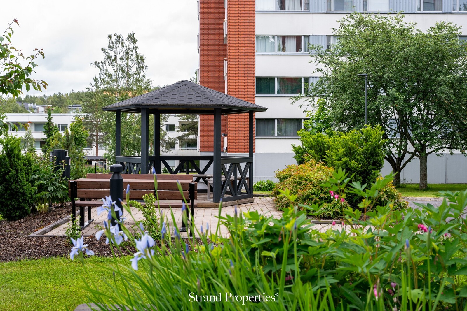 Yhteiset piha-alueet on suunniteltu ja hoidettu kauniisti ja kutsuvat viihtymään. Lapsiperheitä ajatellen löytyy turvallinen ja aidattu leikki- ja oleskelupiha.